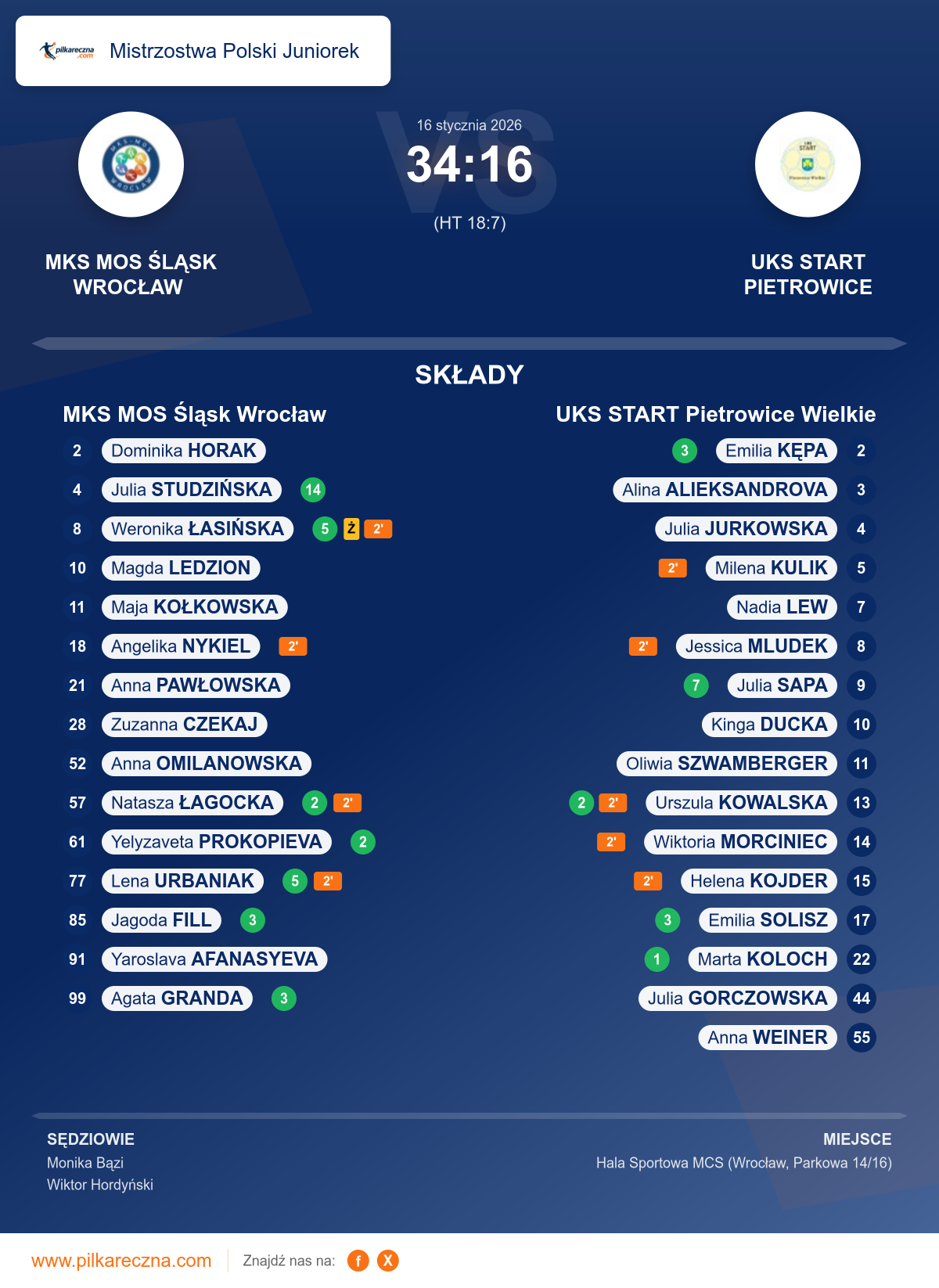 MKS MOS Śląsk Wrocław 34–16 UKS START Pietrowice Wielkie