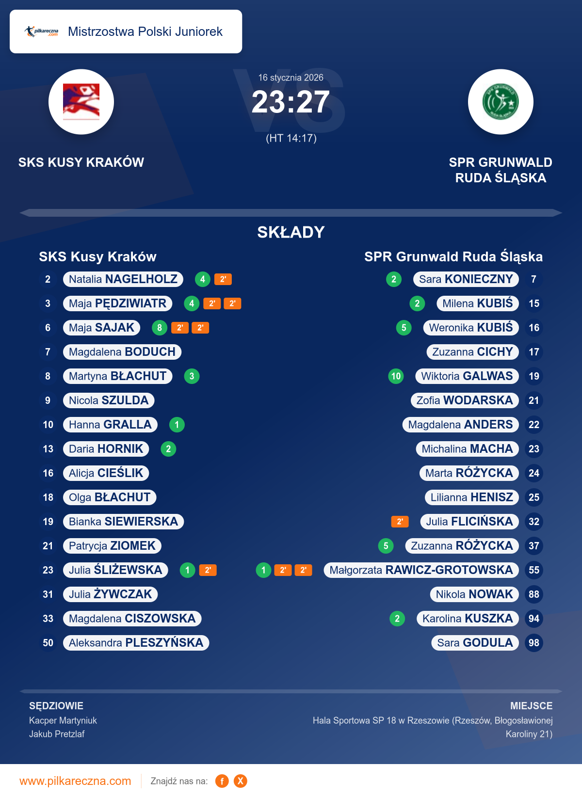 Zawodnicy: Wiktoria Galwas (10), Weronika Kubiś (5), Zuzanna Różycka (5), Karolina Kuszka (2), Milena Kubiś (2), Sara Konieczny (2), Małgorzata Rawicz-grotowska (1), Julia Flicińska, Lilianna Henisz, Magdalena Anders, Marta Różycka, Sara Godula, Zofia Wodarska, Zuzanna Cichy