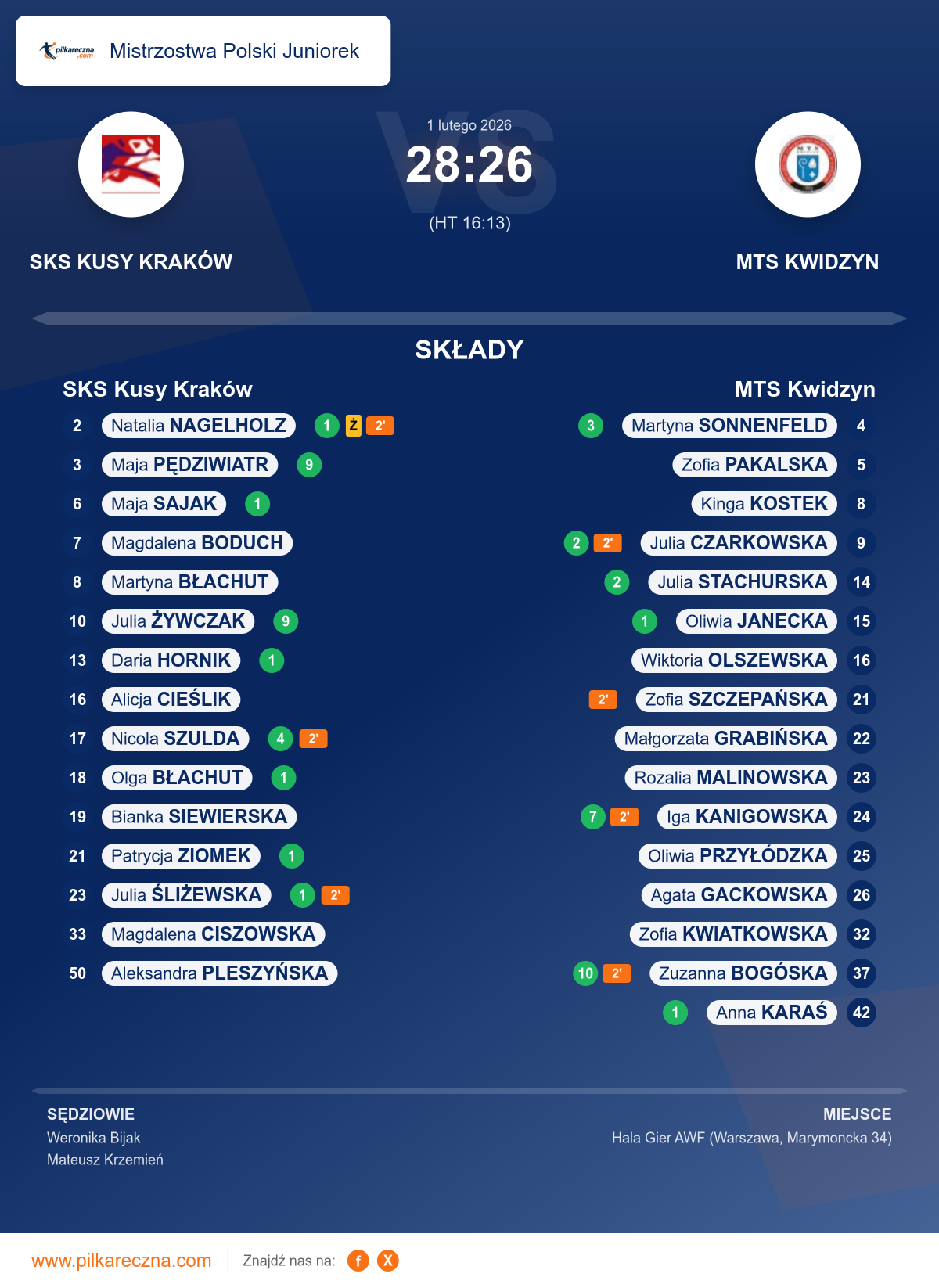 SKS Kusy Kraków 28–26 MTS Kwidzyn
