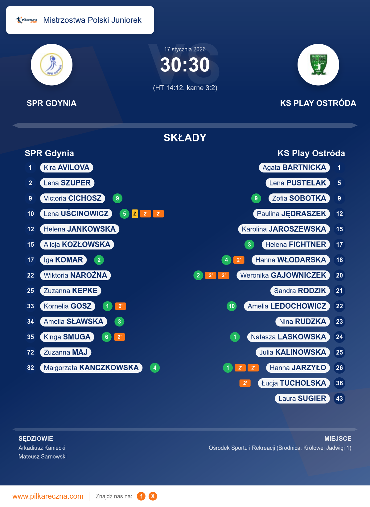 Wynik: 30–30 (HT 14–12), po karnych 3–2