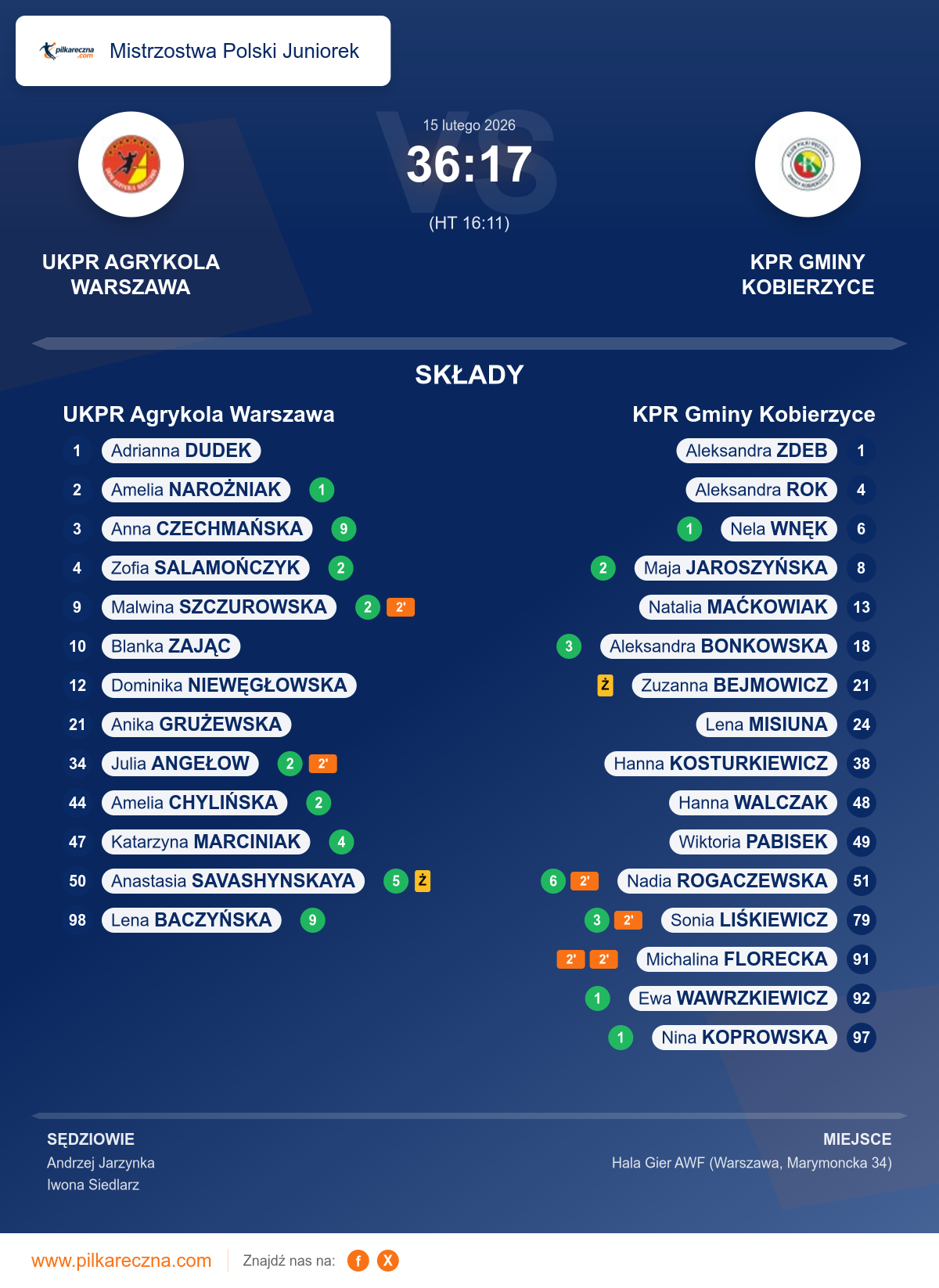 UKPR Agrykola Warszawa 36–17 KPR Gminy Kobierzyce
