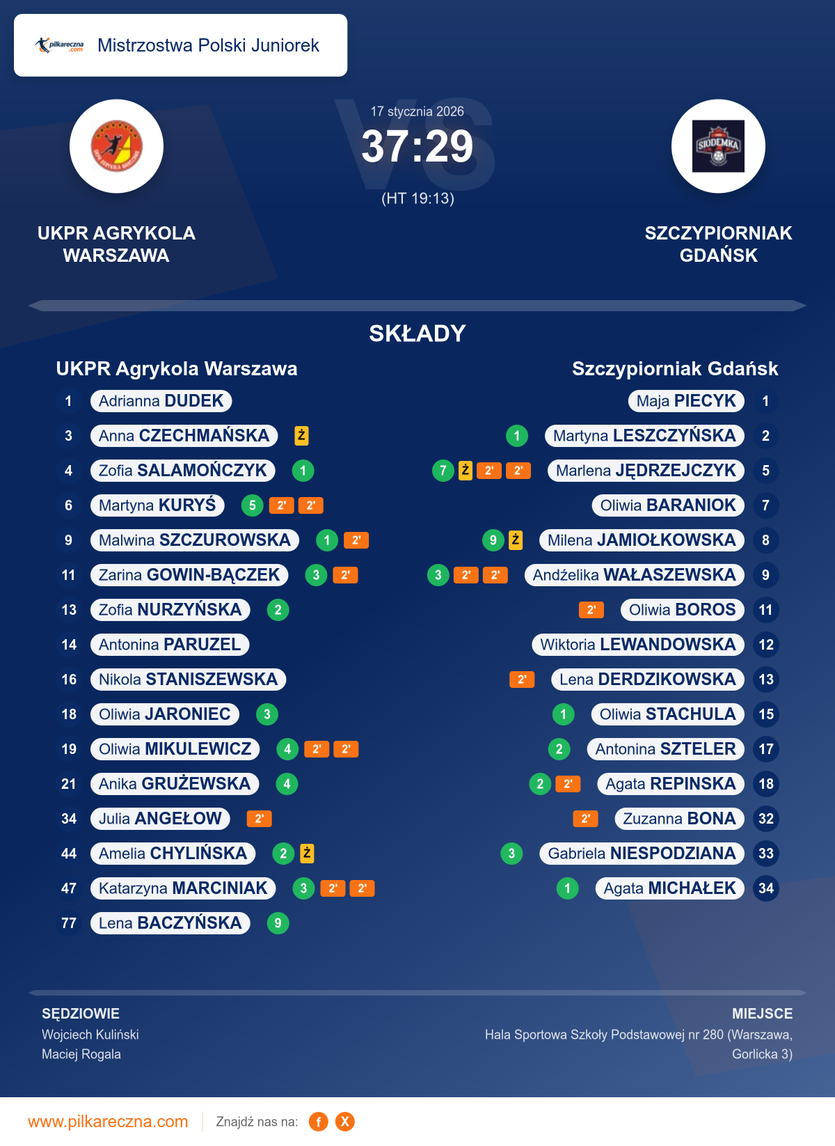 UKPR Agrykola Warszawa 37–29 Szczypiorniak Gdańsk