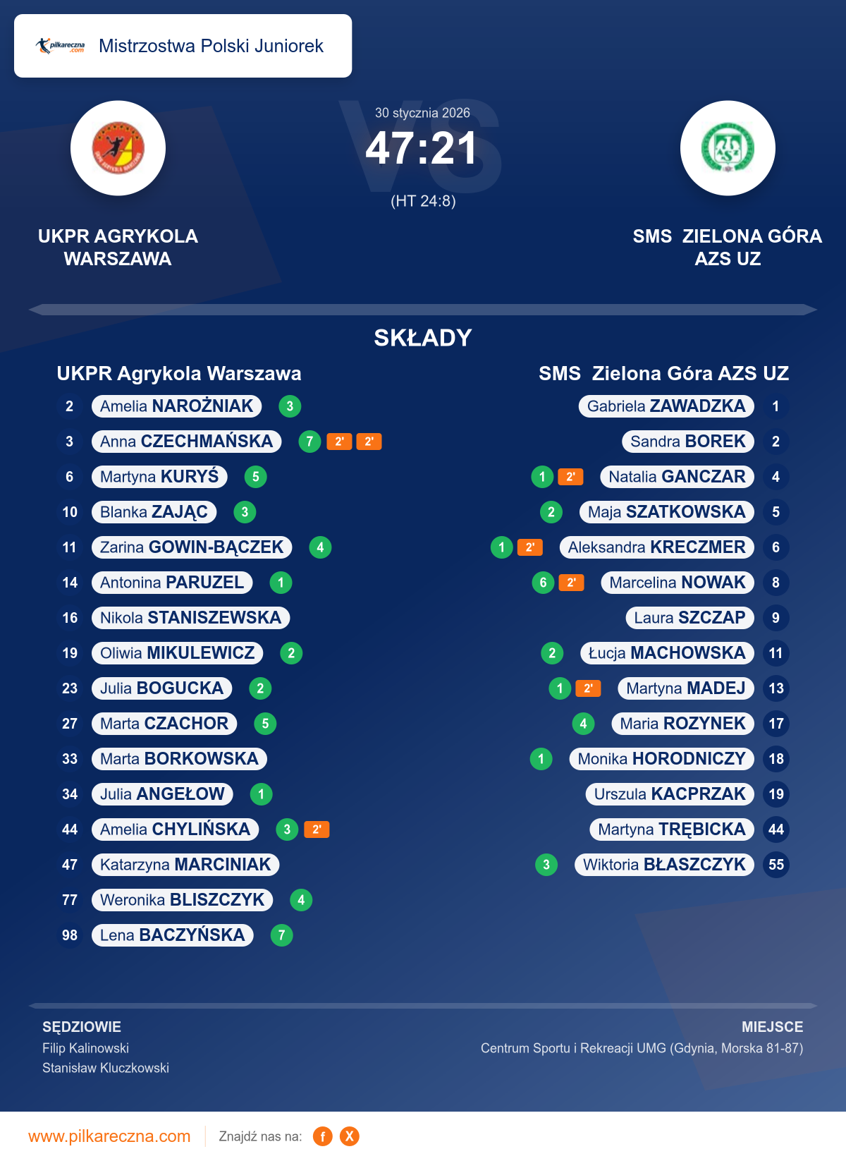 UKPR Agrykola Warszawa 47–21 SMS Zielona Góra AZS UZ