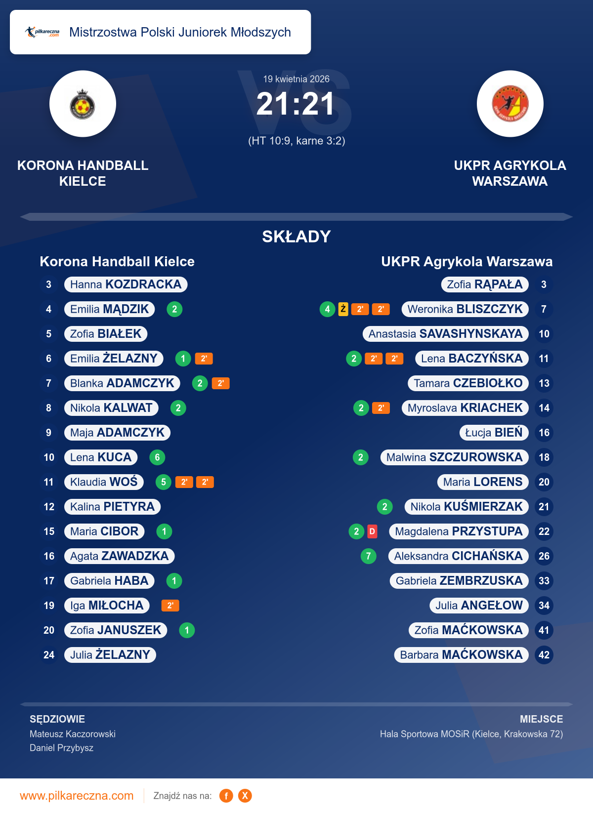Wynik: 21–21 (HT 10–9), po karnych 3–2