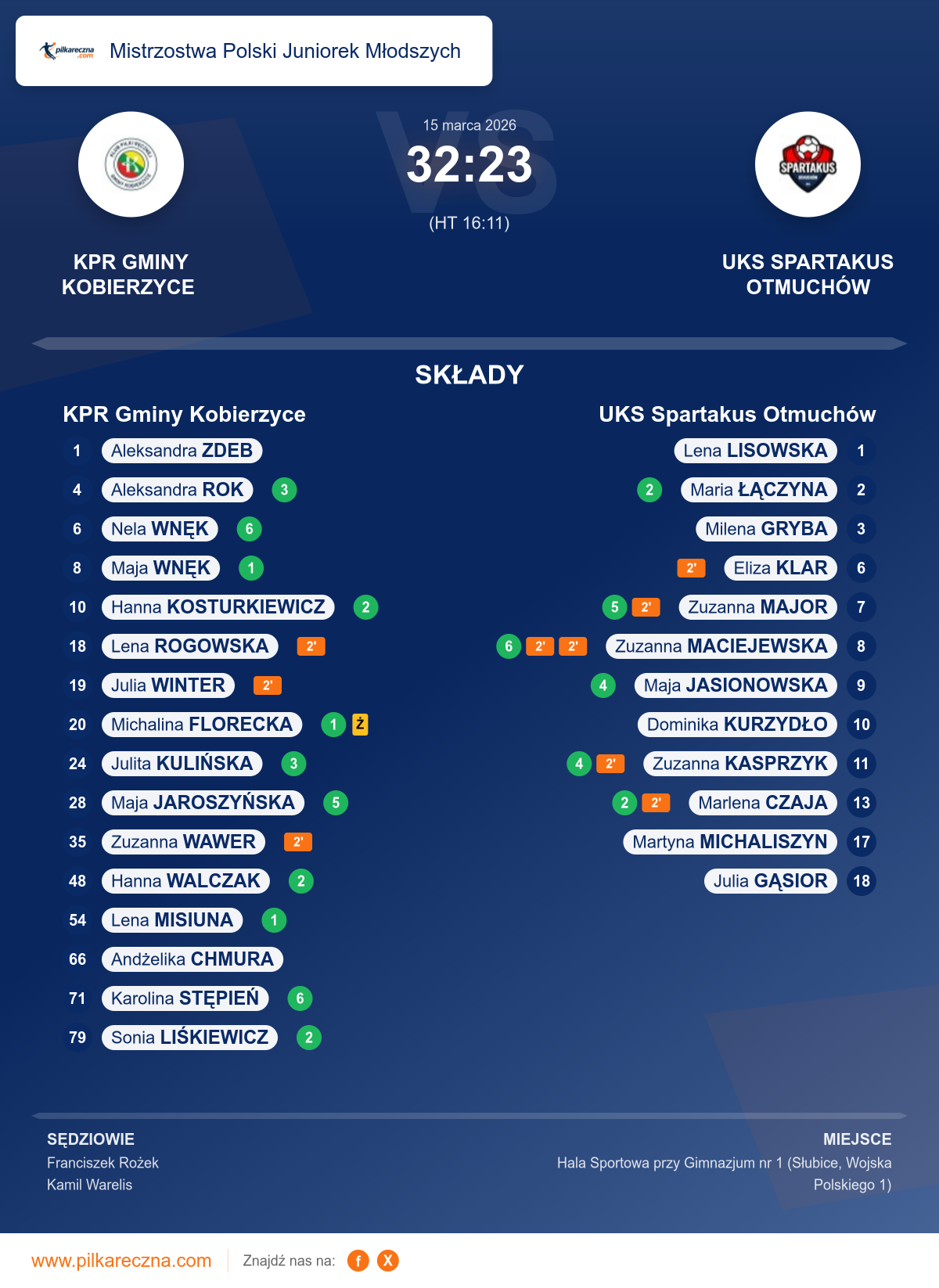 KPR Gminy Kobierzyce 32–23 UKS Spartakus Otmuchów