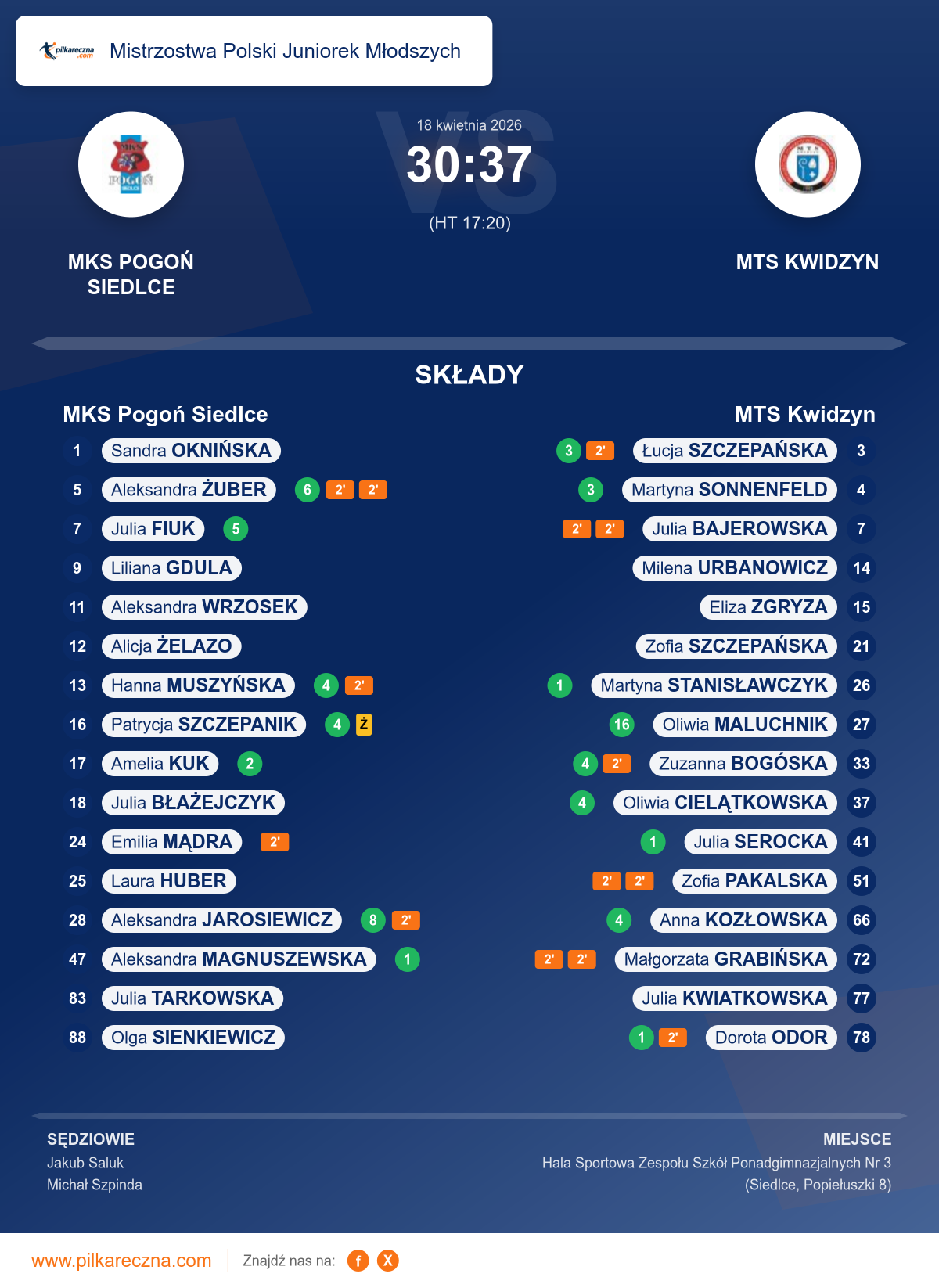 Sędziowali: Jakub Saluk, Michał Szpinda