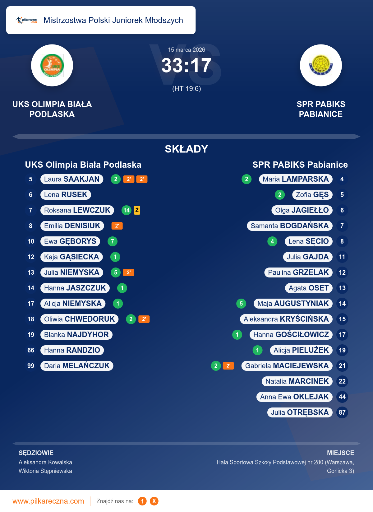 UKS Olimpia Biała Podlaska 33–17 SPR PABIKS Pabianice