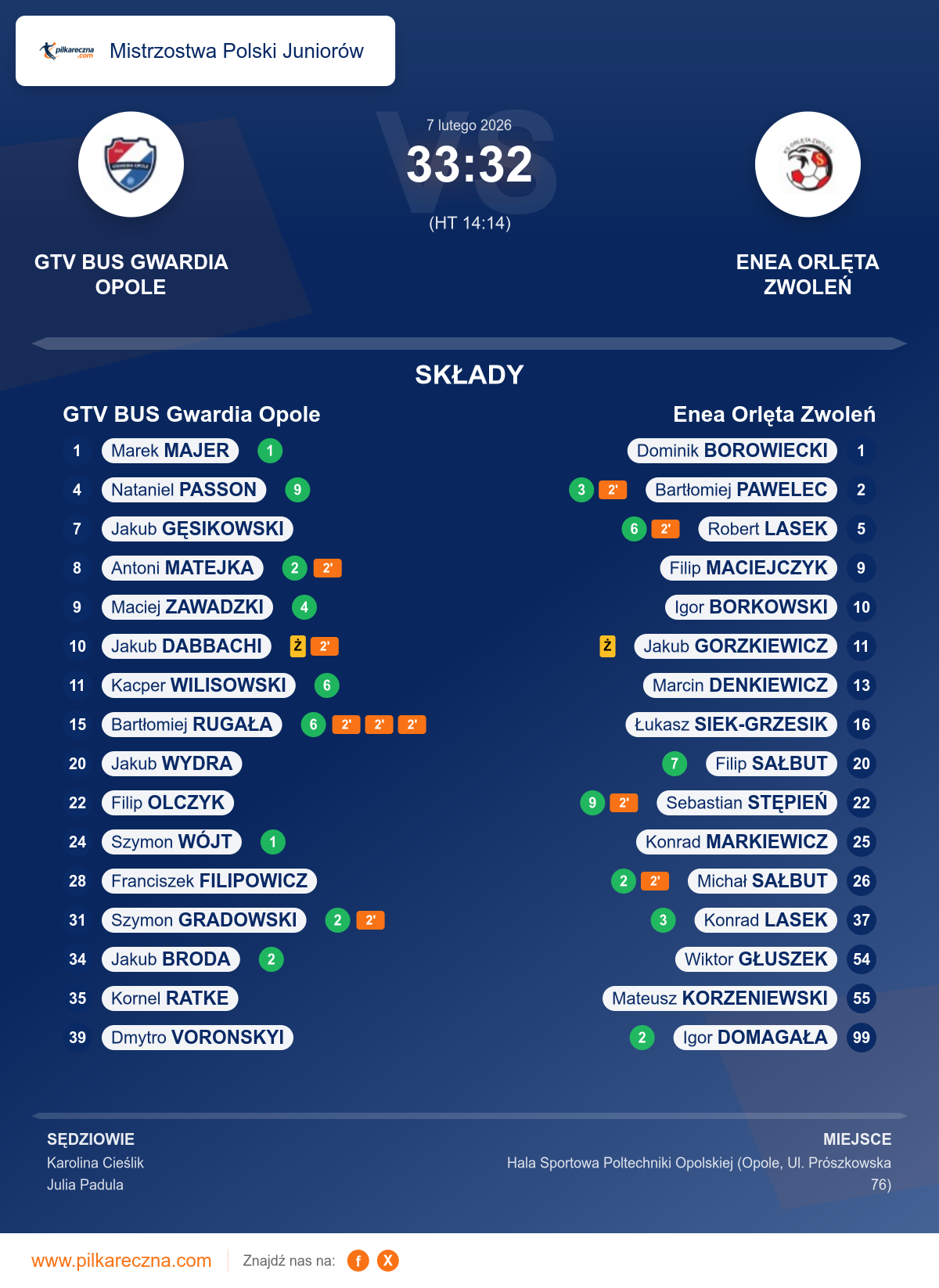 GTV BUS Gwardia Opole 33–32 Enea Orlęta Zwoleń