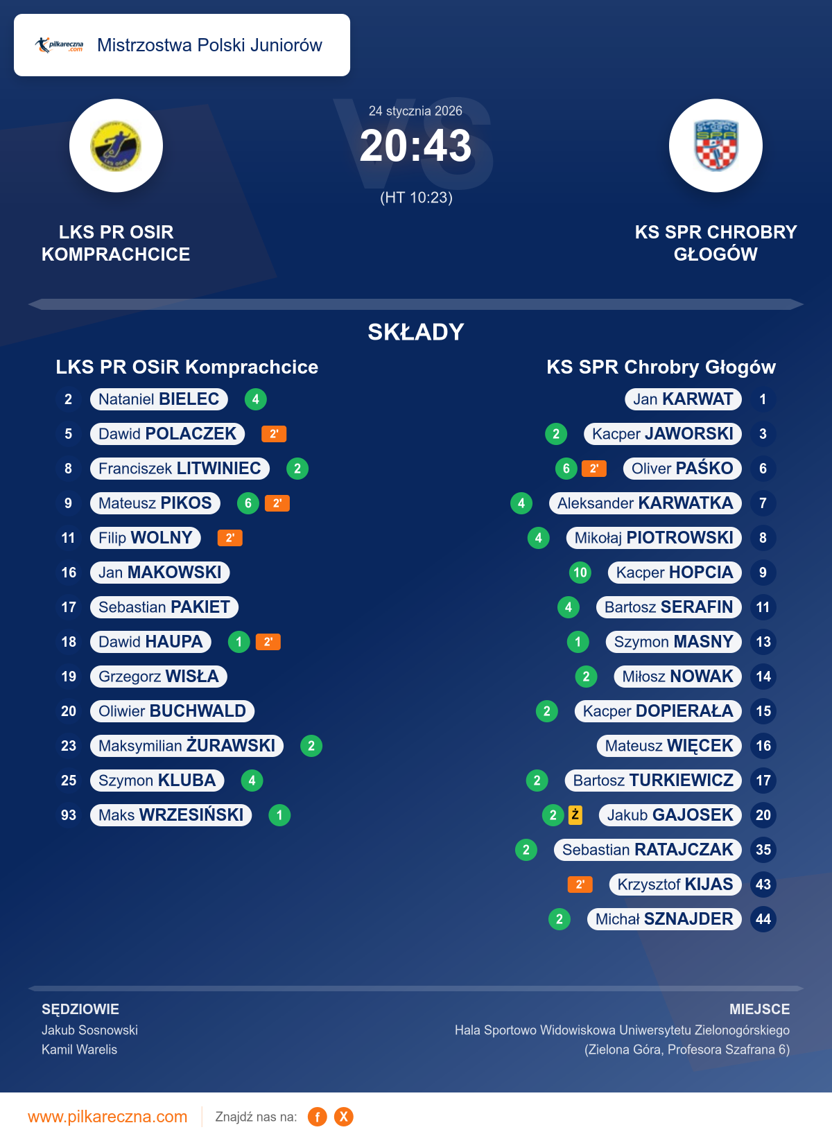 Sędziowali: Jakub Sosnowski, Kamil Warelis