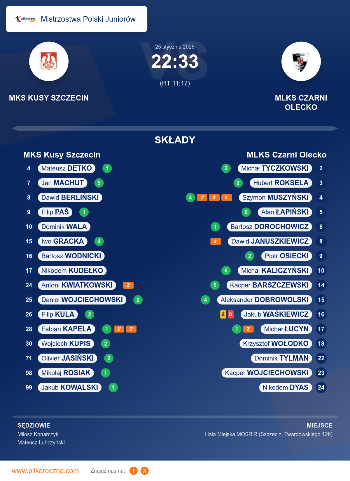 Sędziowali: Miłosz Konarczyk, Mateusz Lubczyński