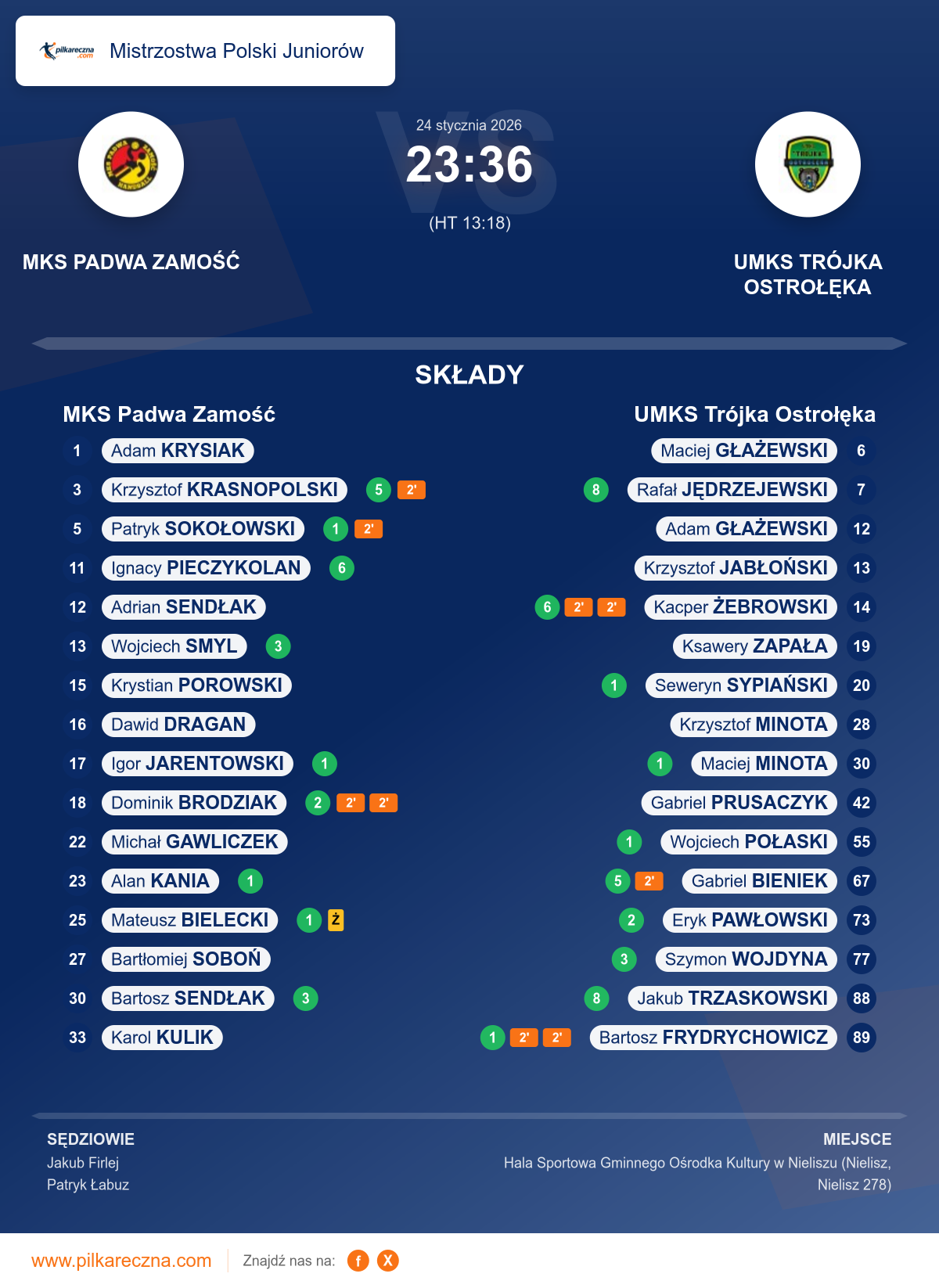 MKS Padwa Zamość 23–36 UMKS Trójka Ostrołęka