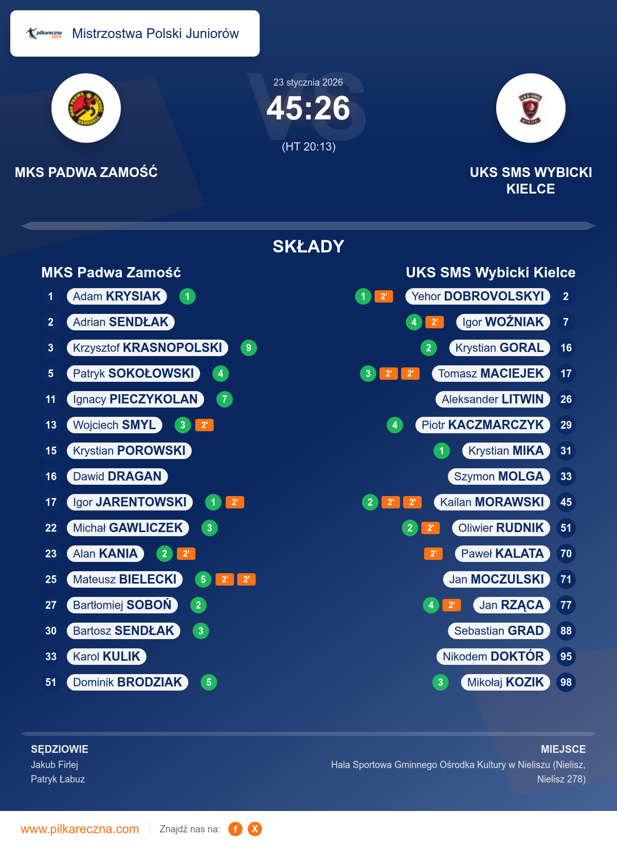 Wynik: 45–26 (HT 20–13)
