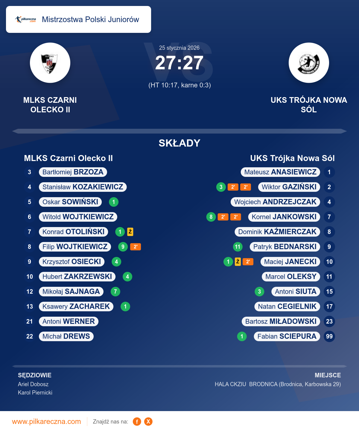 MLKS Czarni Olecko II 27–27 UKS Trójka Nowa Sól
