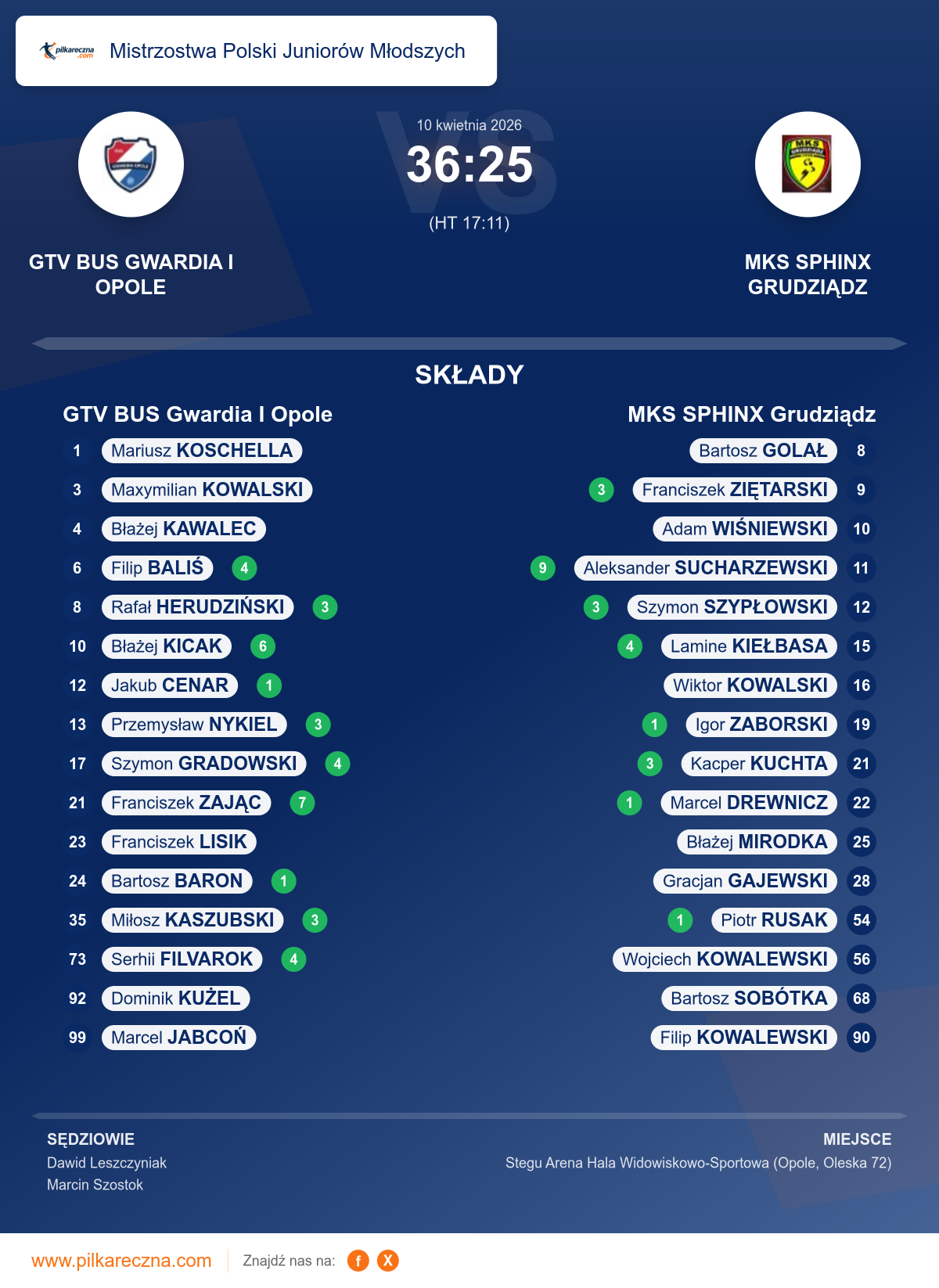 GTV BUS Gwardia I Opole 36–25 MKS SPHINX Grudziądz