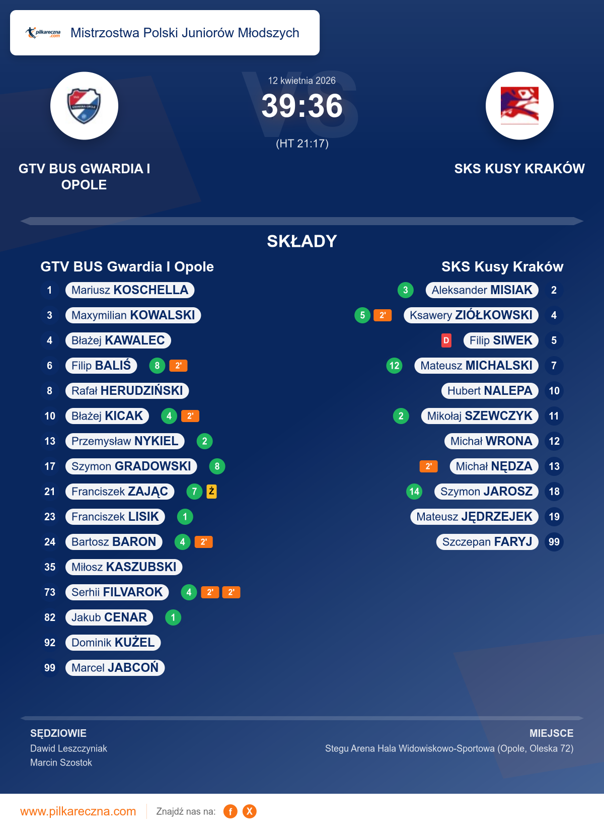 GTV BUS Gwardia I Opole 39–36 SKS Kusy Kraków