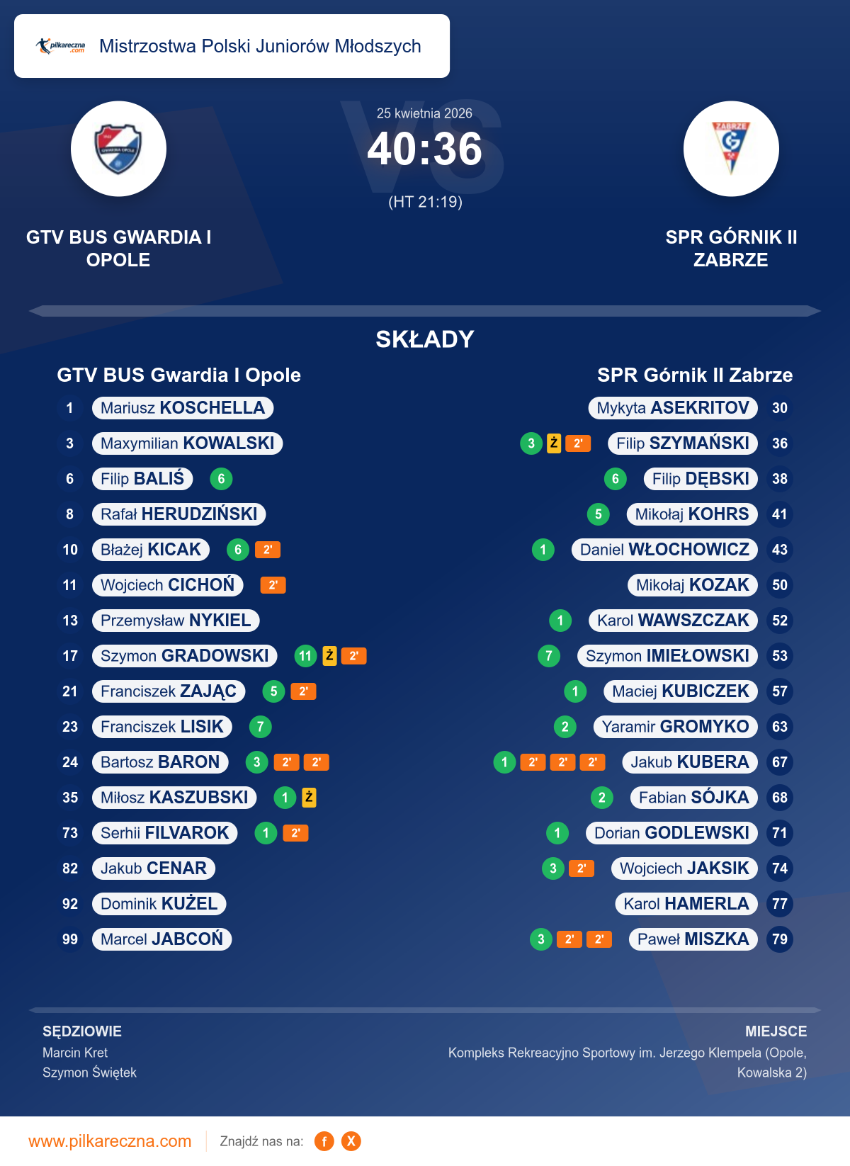 Zawodnicy: Szymon Gradowski (11), Franciszek Lisik (7), Błażej Kicak (6), Filip Baliś (6), Franciszek Zając (5), Bartosz Baron (3), Miłosz Kaszubski (1), Serhii Filvarok (1), Dominik Kużel, Marcel Jabcoń, Maxymilian Kowalski, Przemysław Nykiel, Rafał Herudziński, Wojciech Cichoń