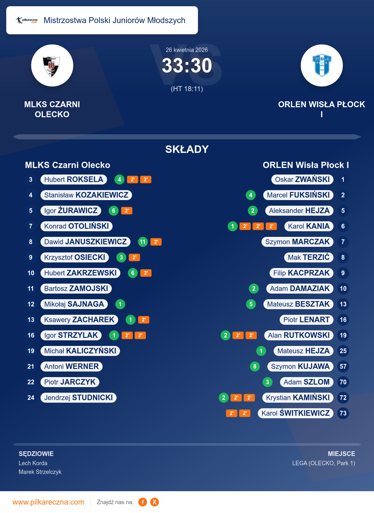 MLKS Czarni Olecko 33–30 ORLEN Wisła Płock I