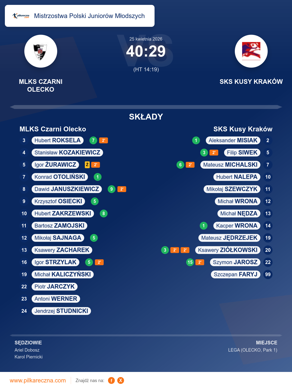 MLKS Czarni Olecko 40–29 SKS Kusy Kraków