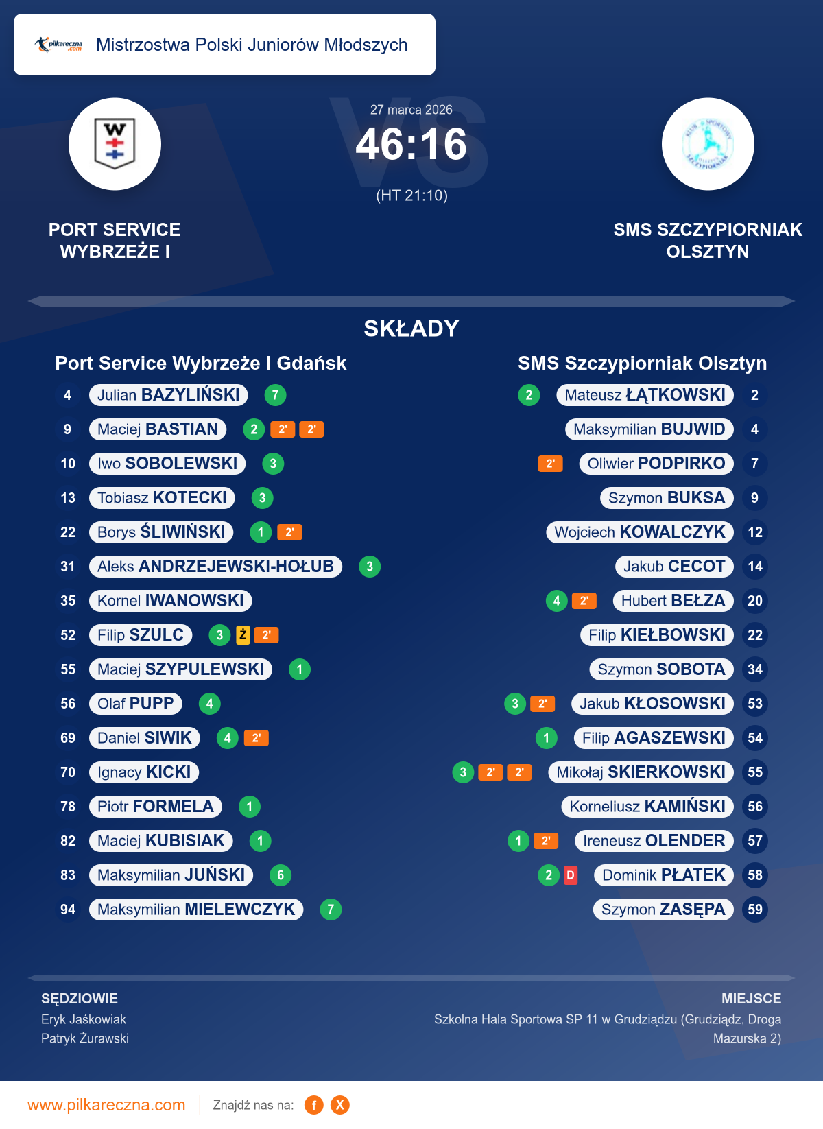 Port Service Wybrzeże I Gdańsk 46–16 SMS Szczypiorniak Olsztyn