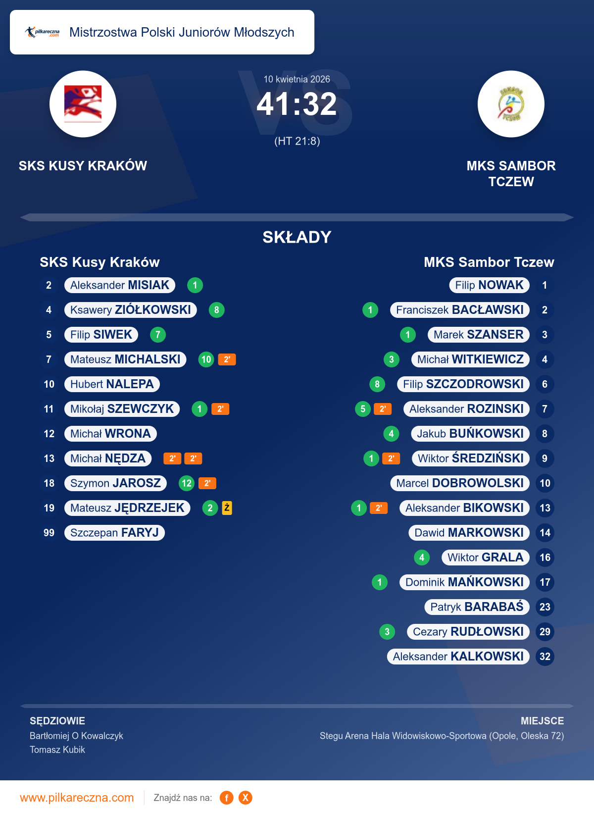 Sędziowali: Bartłomiej O Kowalczyk, Tomasz Kubik