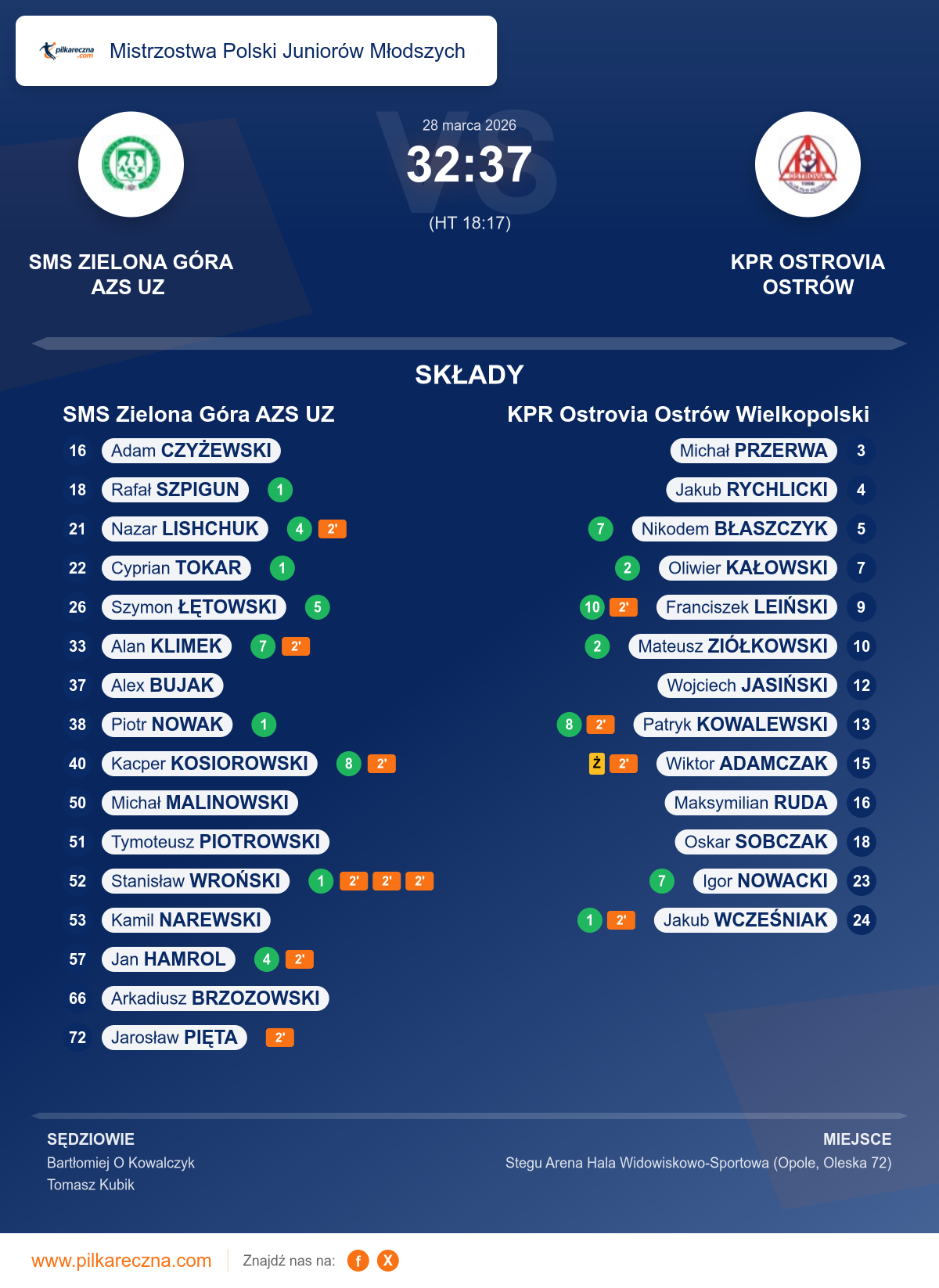 Sędziowali: Bartłomiej O Kowalczyk, Tomasz Kubik