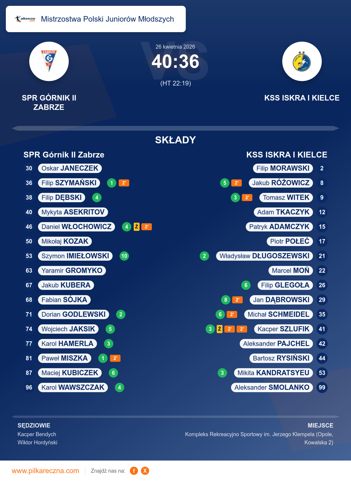 Sędziowali: Kacper Bendych, Wiktor Hordyński