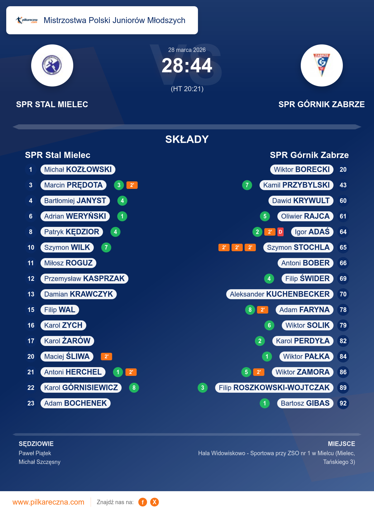Zawodnicy: Adam Faryna (8), Kamil Przybylski (7), Wiktor Solik (6), Oliwier Rajca (5), Wiktor Zamora (5), Filip Świder (4), Filip Roszkowski-wojtczak (3), Igor Adaś (2), Karol Perdyła (2), Bartosz Gibas (1), Wiktor Pałka (1), Aleksander Kuchenbecker, Antoni Bober, Szymon Stochla