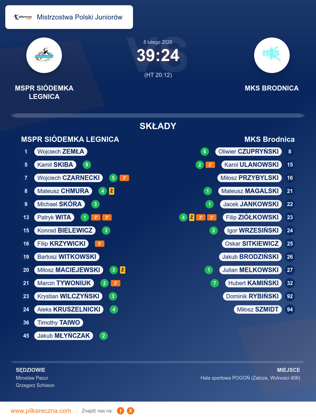 Sędziowali: Miroslaw Pazur, Grzegorz Schiwon