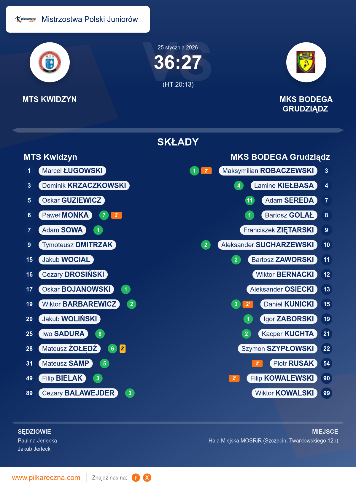 MTS Kwidzyn 36–27 MKS BODEGA Grudziądz