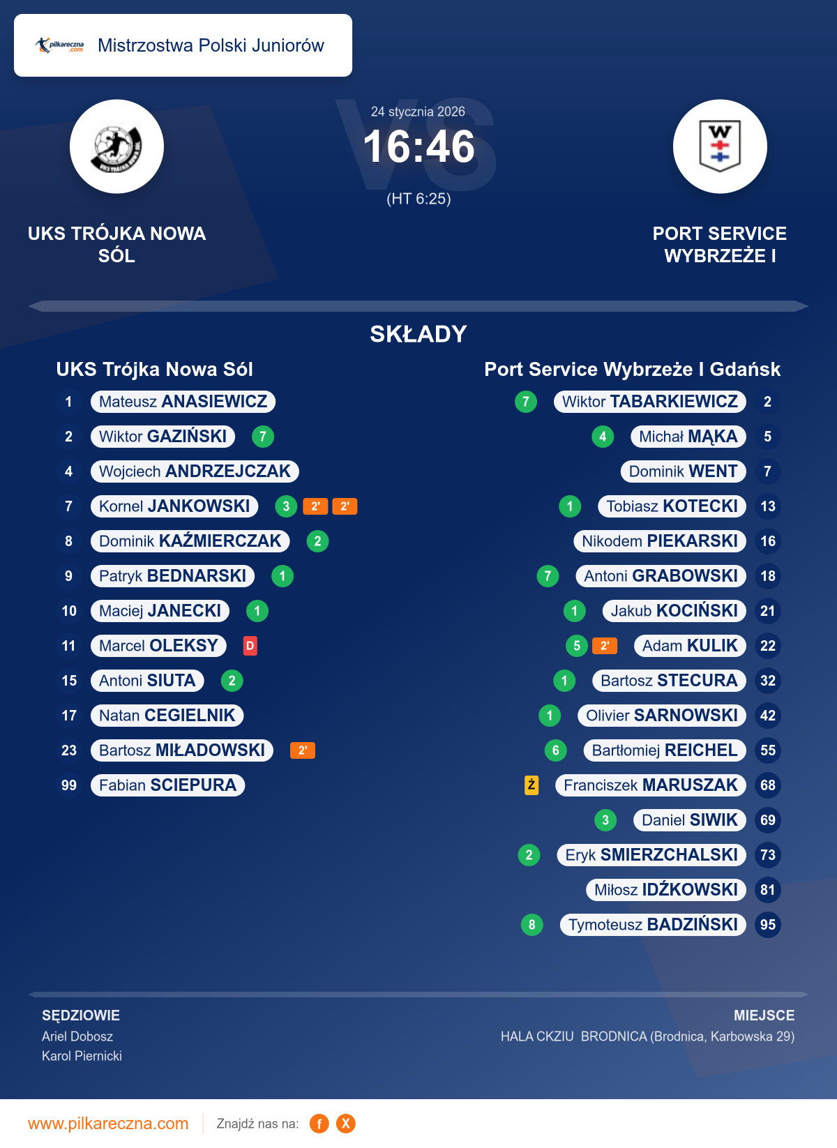 UKS Trójka Nowa Sól 16–46 Port Service Wybrzeże I Gdańsk