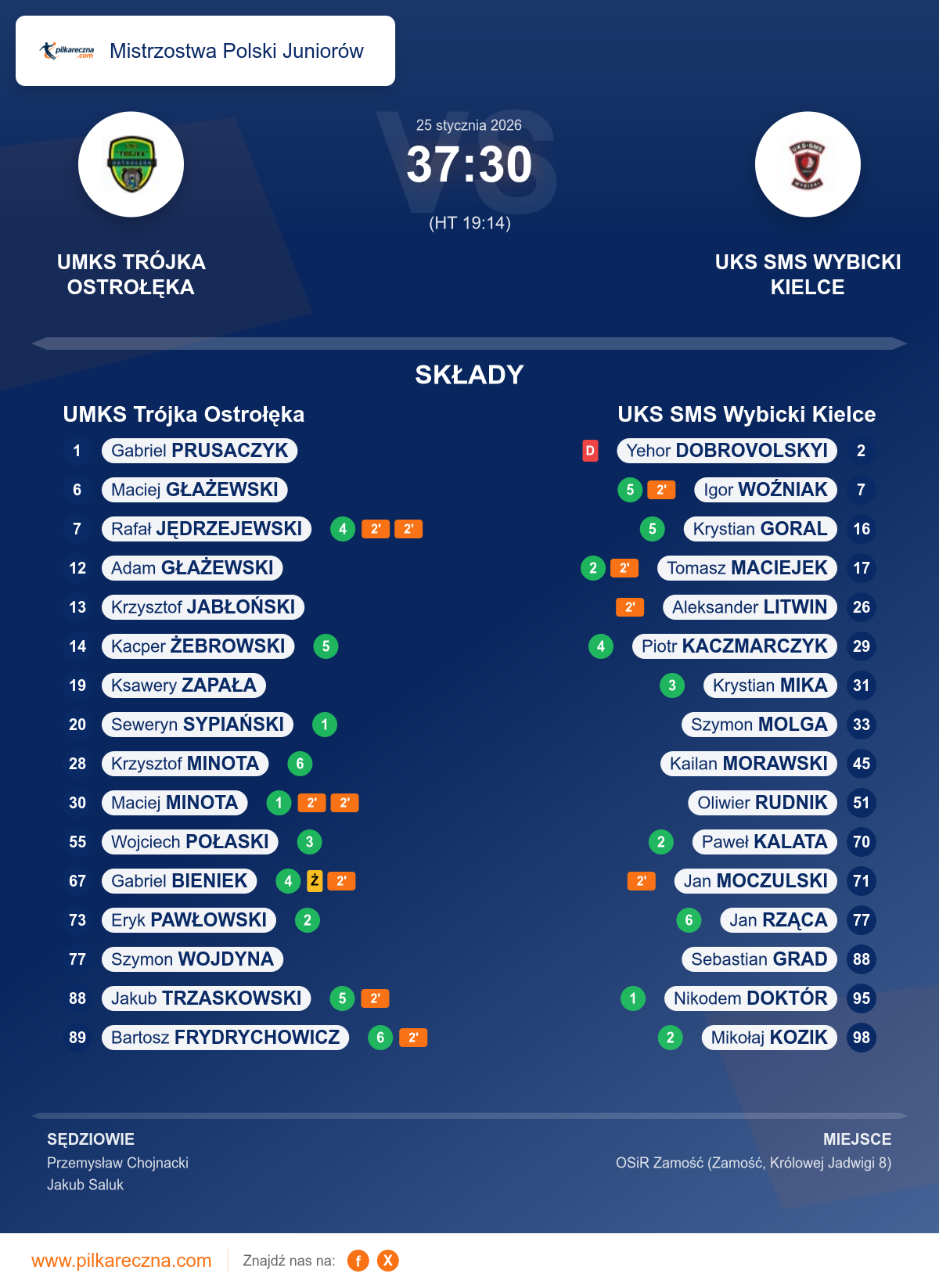 UMKS Trójka Ostrołęka 37–30 UKS SMS Wybicki Kielce