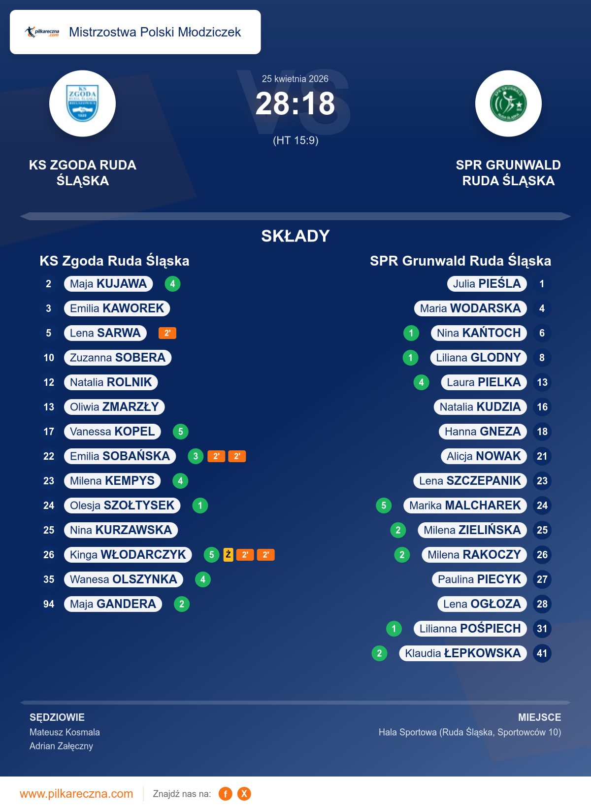 KS Zgoda Ruda Śląska 28–18 SPR Grunwald Ruda Śląska