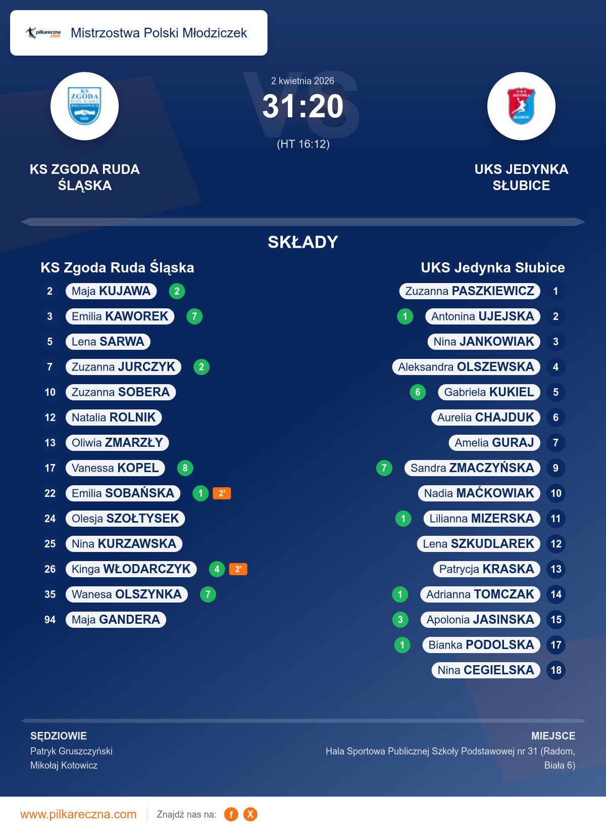 KS Zgoda Ruda Śląska 31–20 UKS Jedynka Słubice