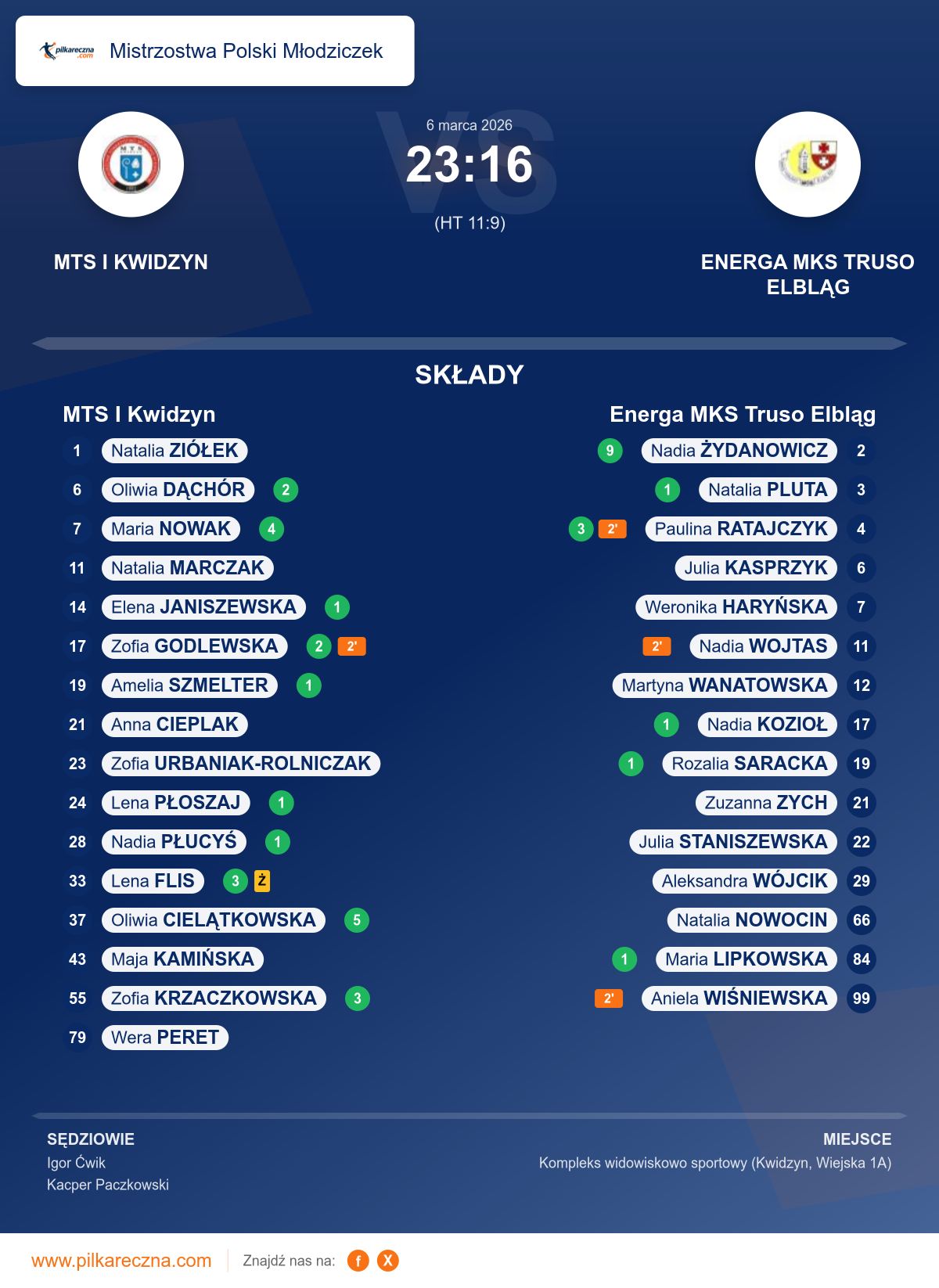 Sędziowali: Igor Ćwik, Kacper Paczkowski