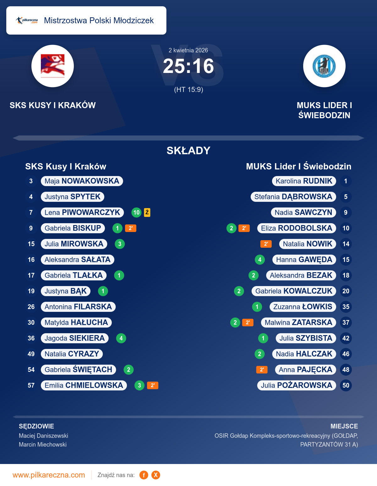 SKS Kusy I Kraków 25–16 MUKS Lider I Świebodzin
