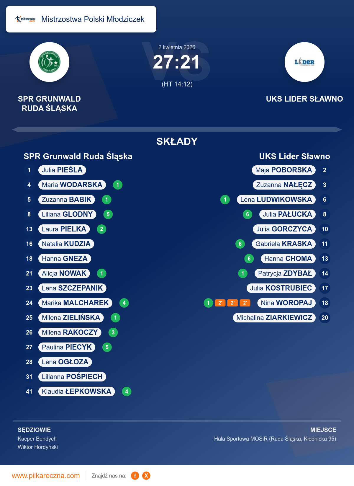 SPR Grunwald Ruda Śląska 27–21 UKS Lider Sławno