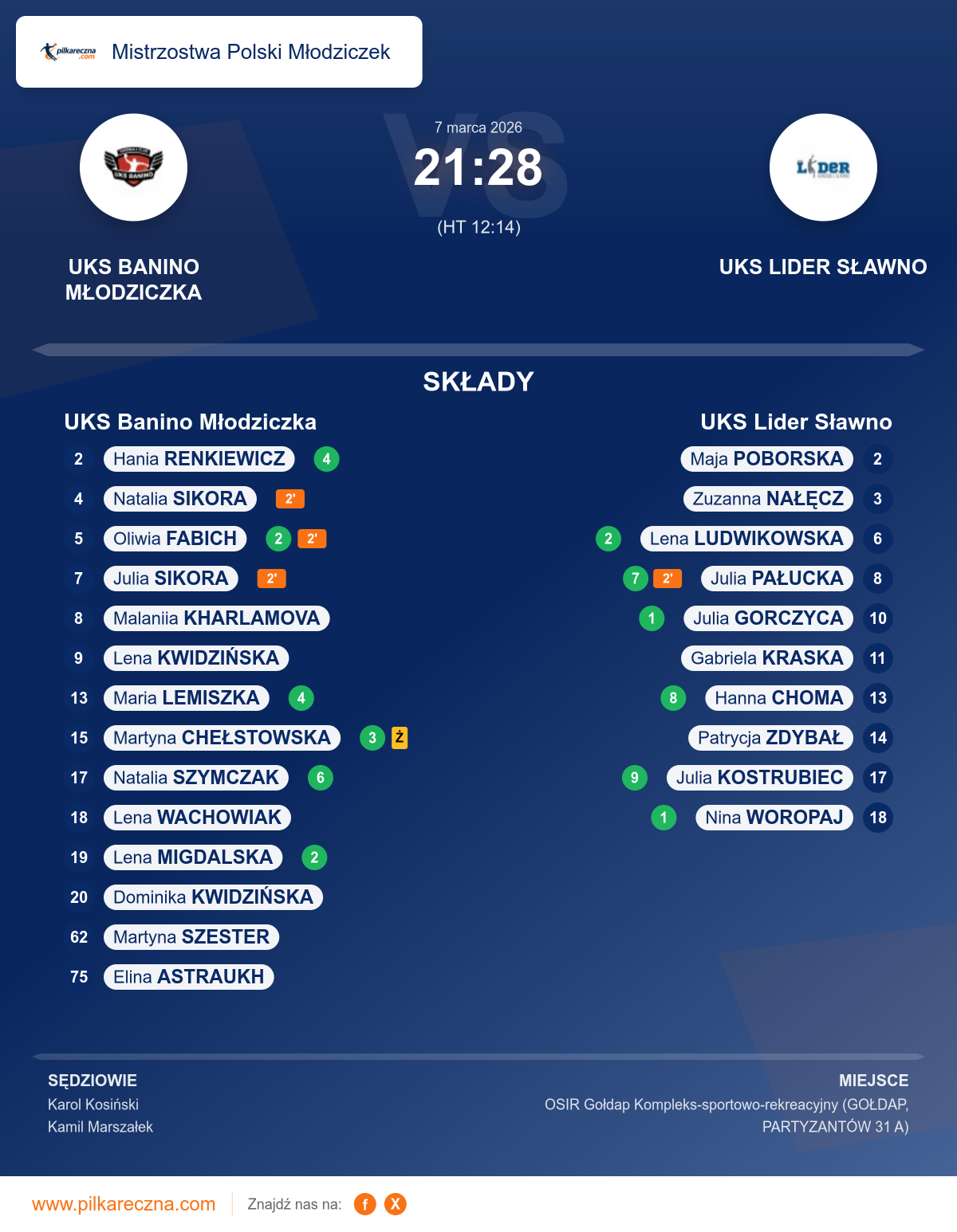 UKS Banino Młodziczka 21–28 UKS Lider Sławno