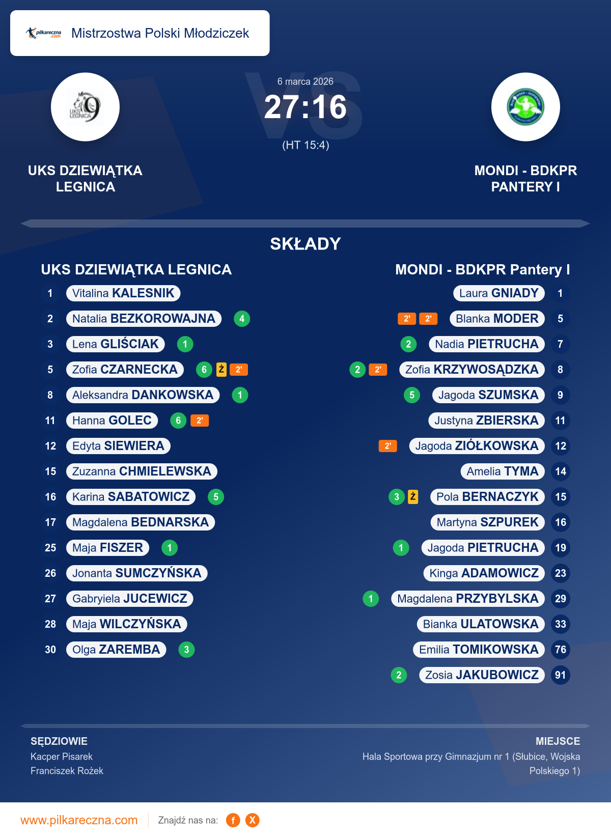 UKS DZIEWIĄTKA LEGNICA 27–16 MONDI - BDKPR Pantery I