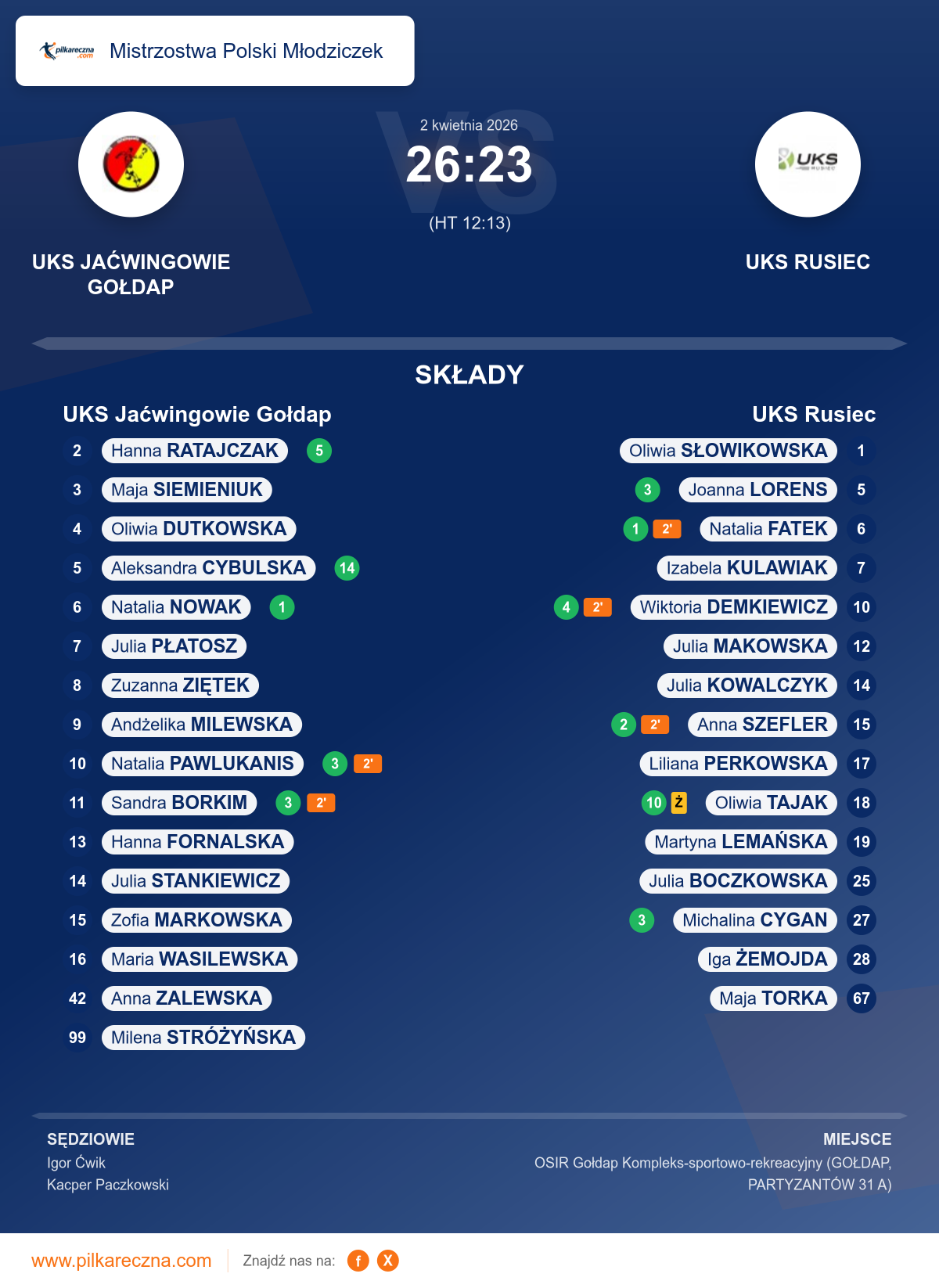 Wynik: 26–23 (HT 12–13)