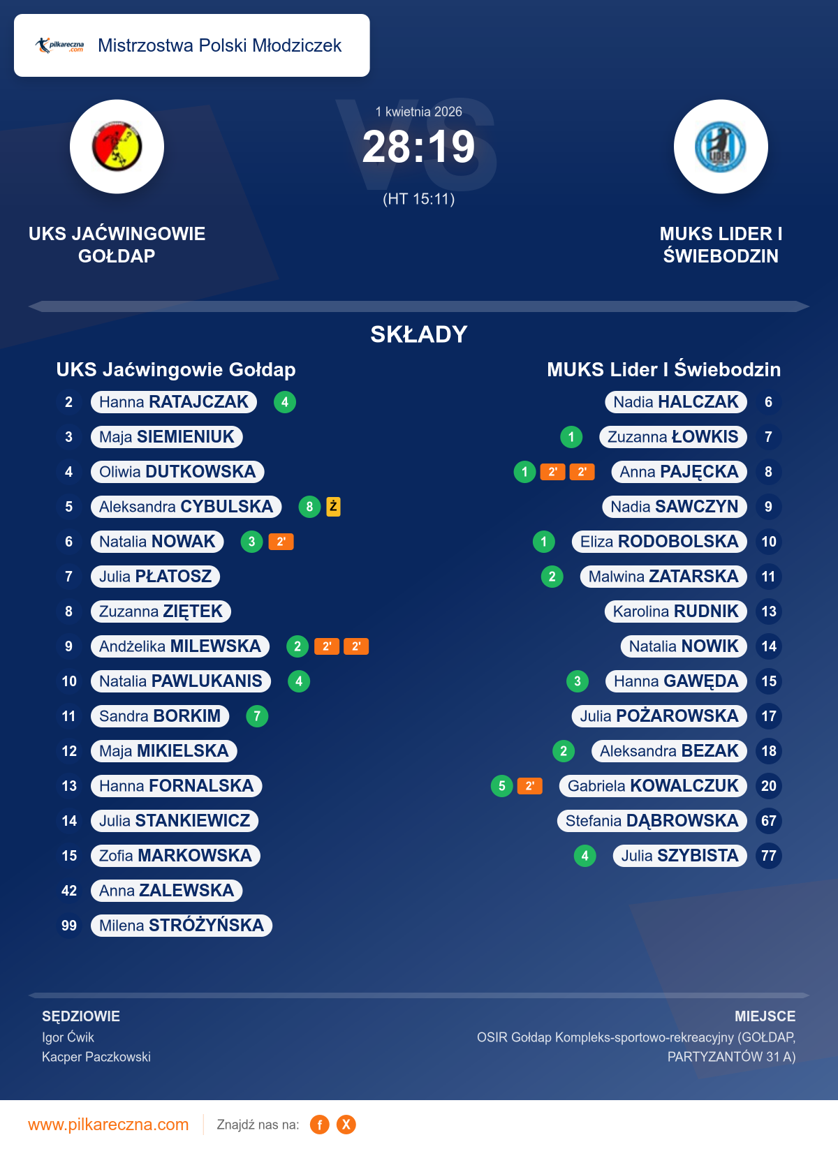 Sędziowali: Igor Ćwik, Kacper Paczkowski