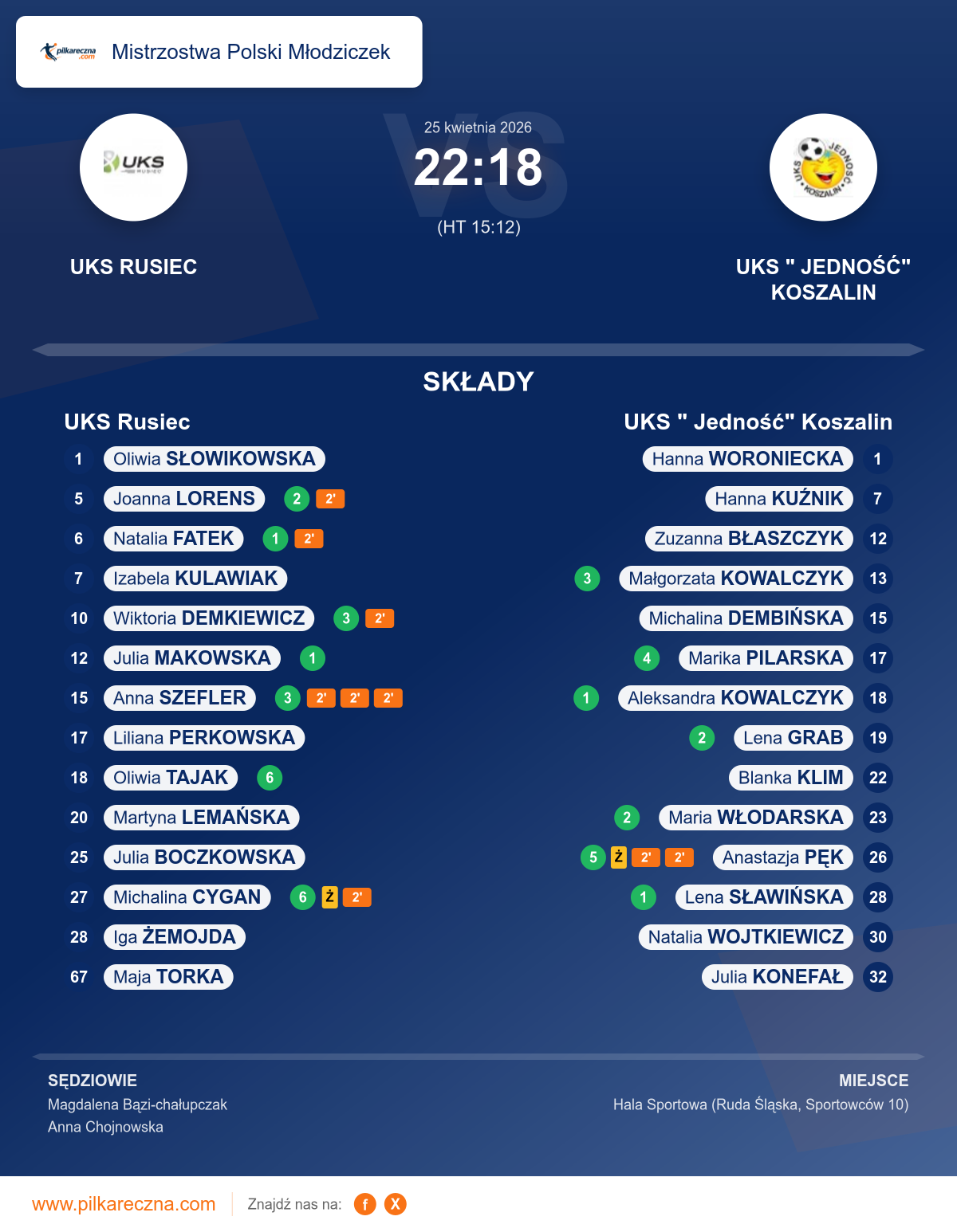 Bramkarze: Julia Makowska, Oliwia Słowikowska