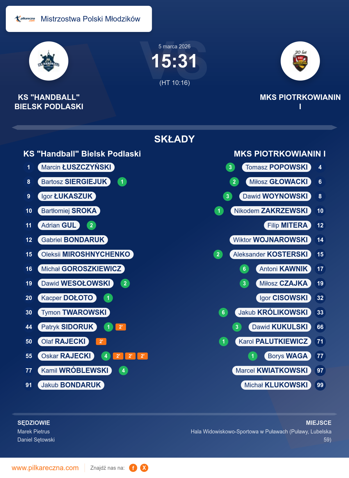 Bramkarze: Michał Klukowski, Marcel Kwiatkowski, Filip Mitera