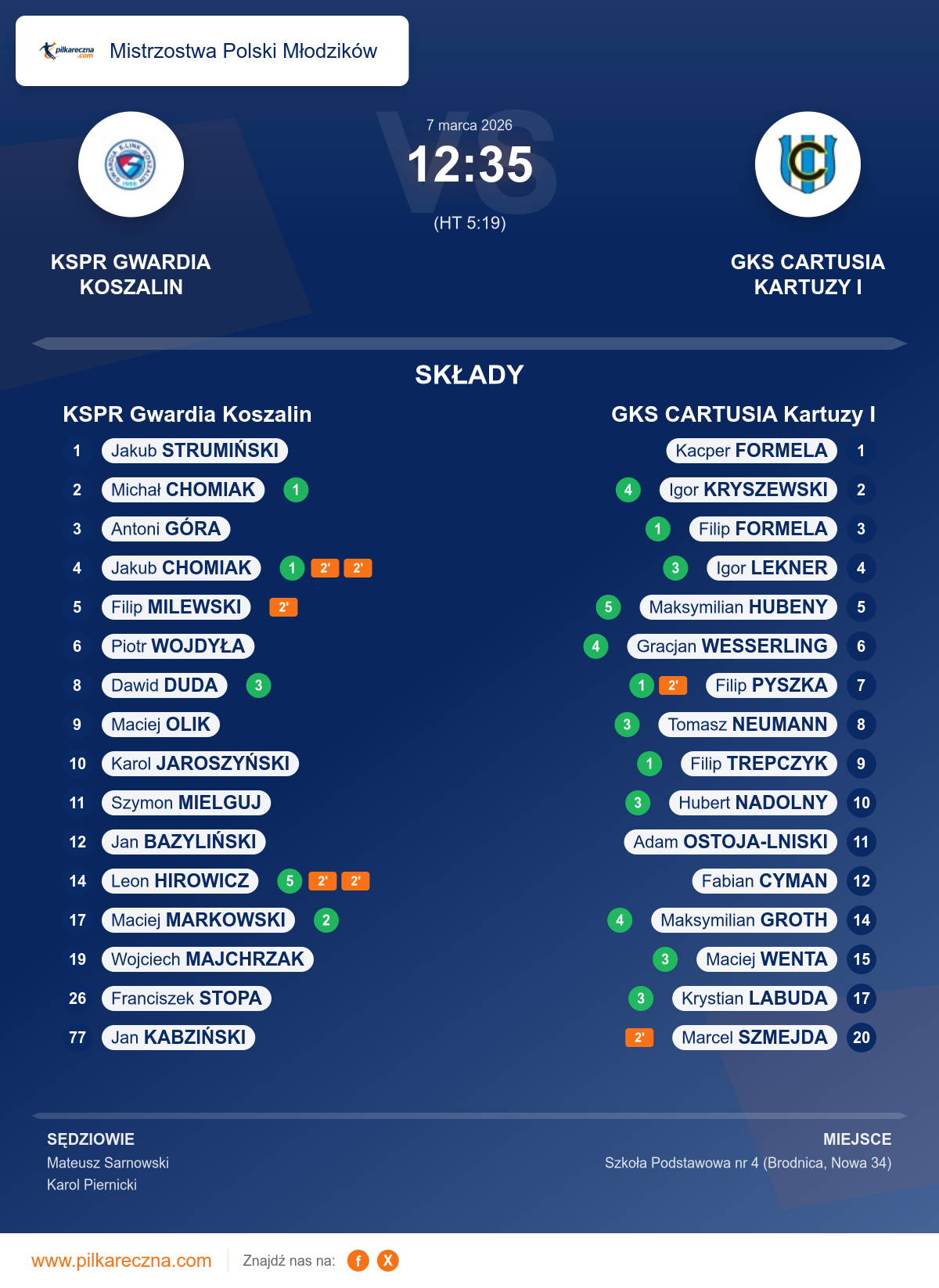 Zawodnicy: Leon Hirowicz (5), Dawid Duda (3), Maciej Markowski (2), Jakub Chomiak (1), Michał Chomiak (1), Antoni Góra, Filip Milewski, Franciszek Stopa, Jan Kabziński, Karol Jaroszyński, Maciej Olik, Piotr Wojdyła, Wojciech Majchrzak