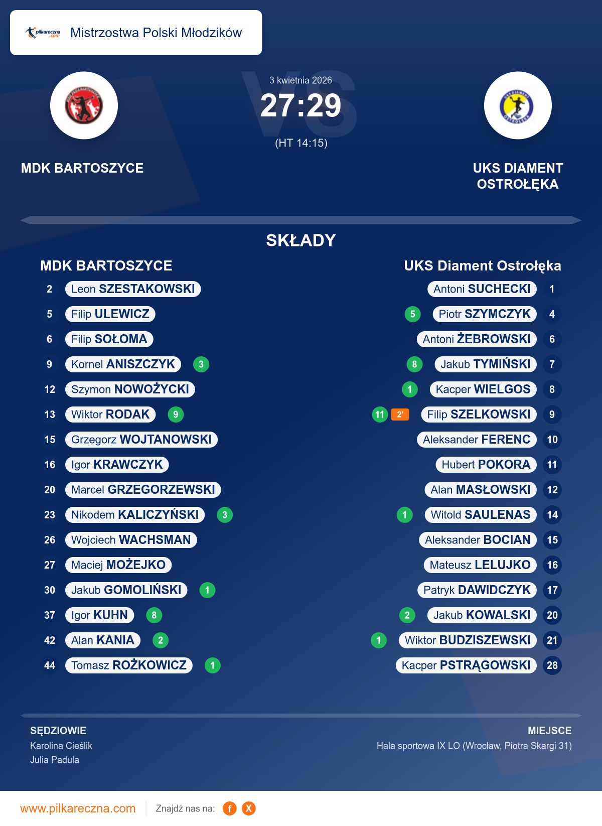 MDK BARTOSZYCE 27–29 UKS Diament Ostrołęka