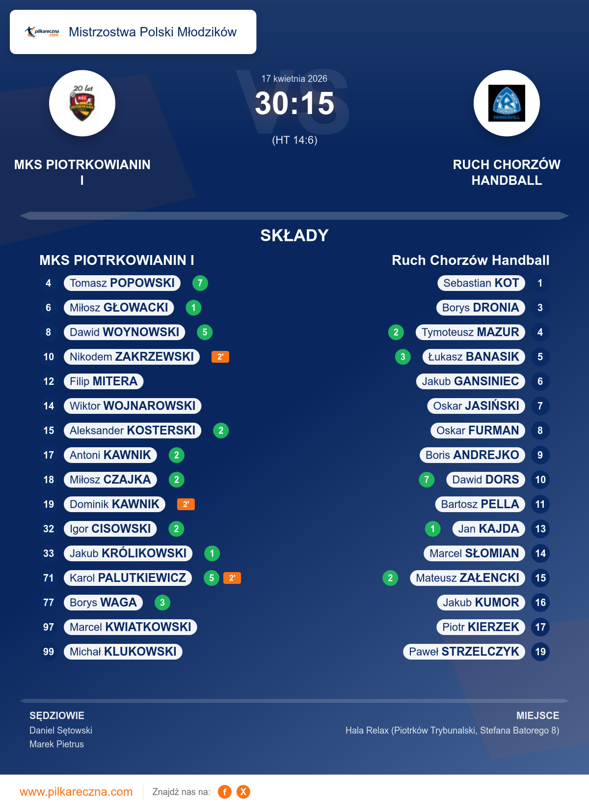 Bramkarze: Michał Klukowski, Marcel Kwiatkowski, Filip Mitera