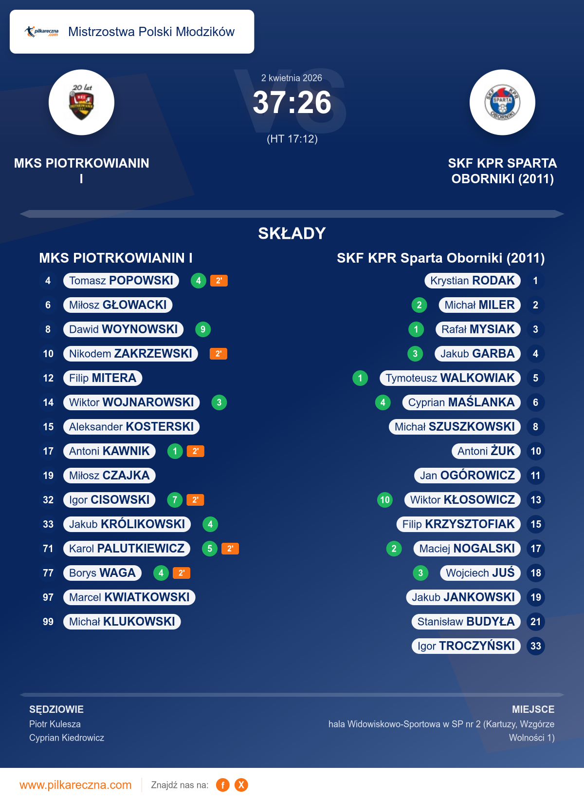 Sędziowali: Piotr Kulesza, Cyprian Kiedrowicz