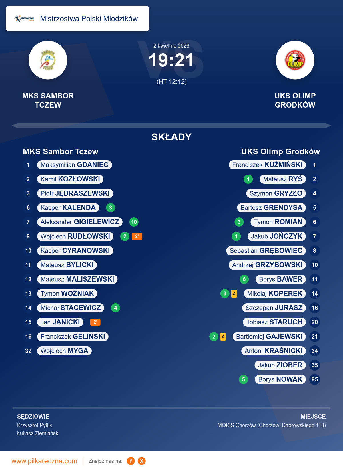 MKS Sambor Tczew 19–21 UKS Olimp Grodków