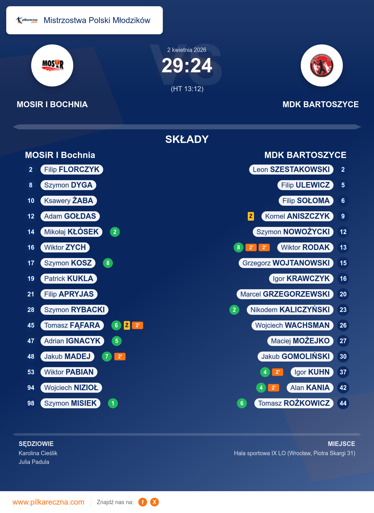 Wynik: 29–24 (HT 13–12)