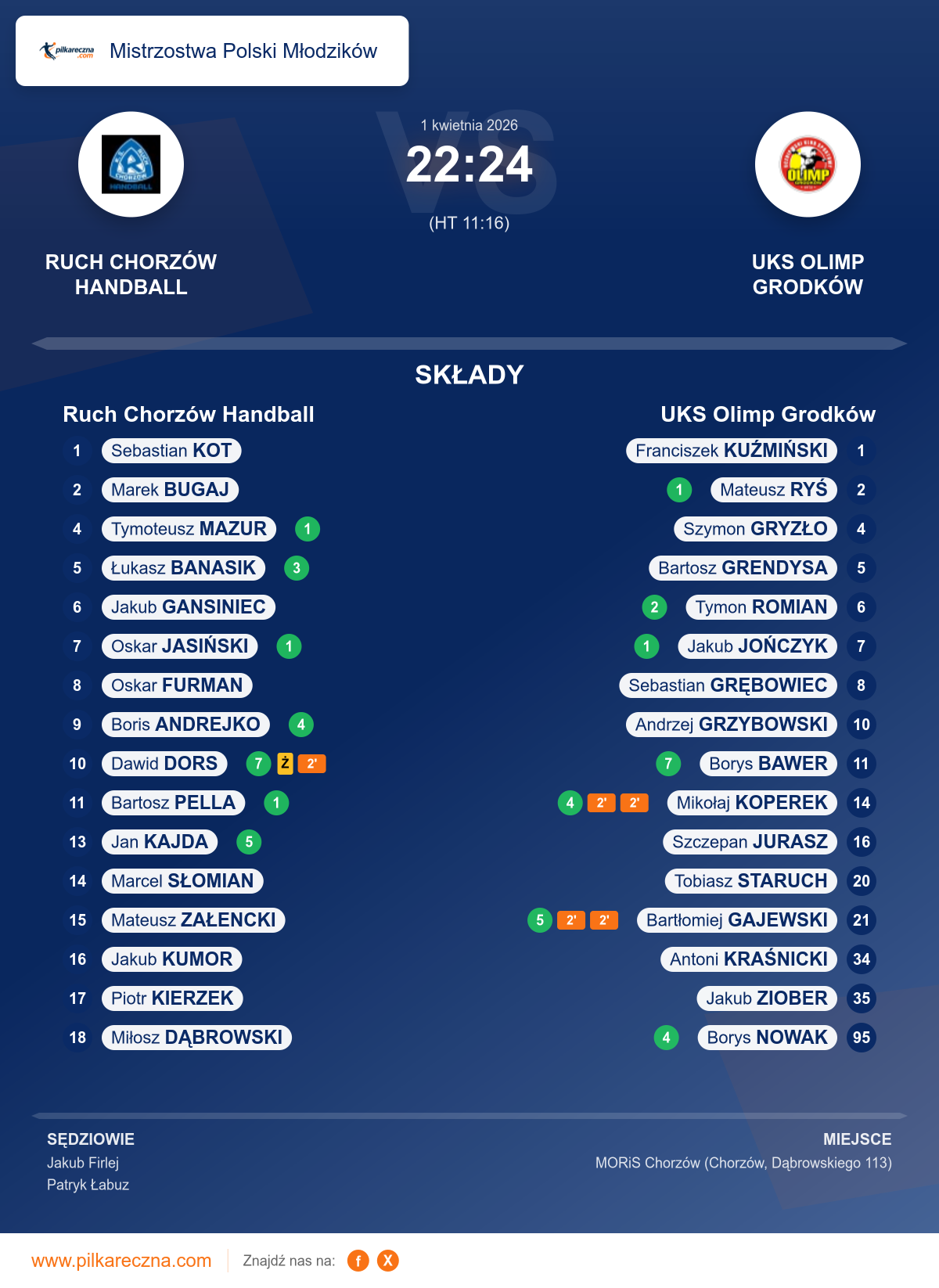 Sędziowali: Jakub Firlej, Patryk Łabuz