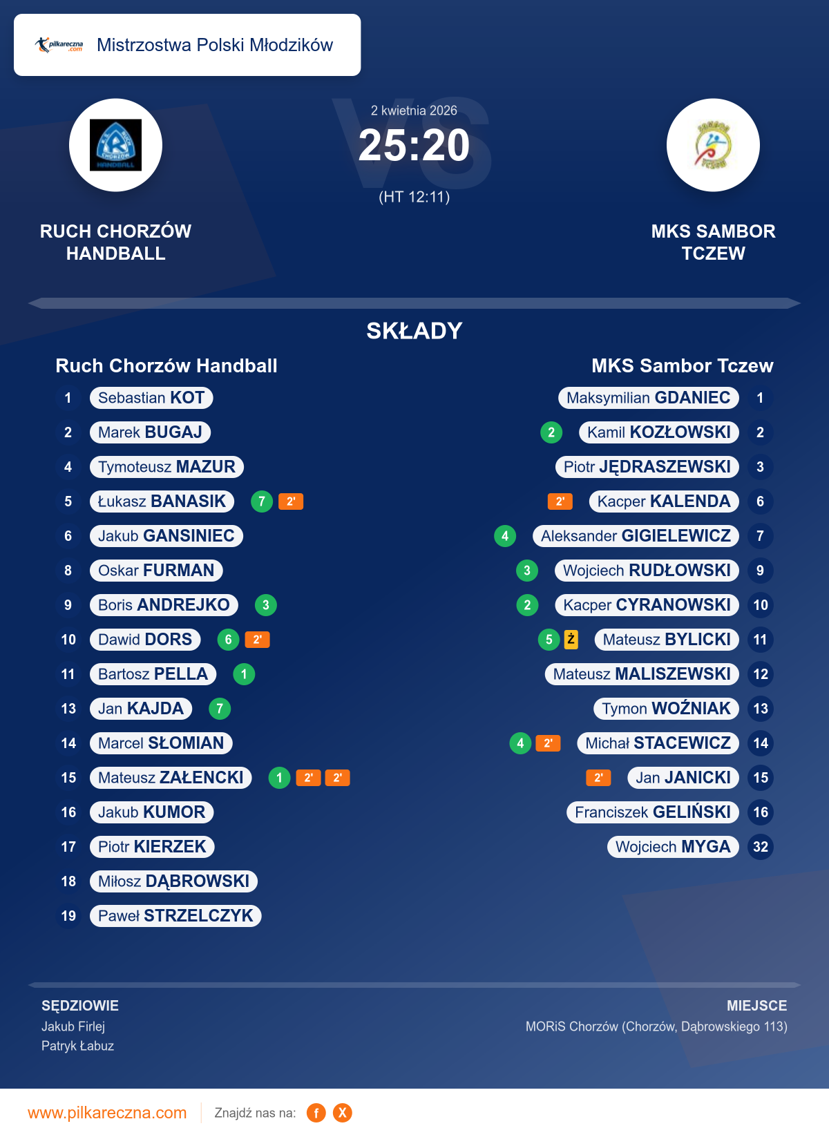 Sędziowali: Jakub Firlej, Patryk Łabuz